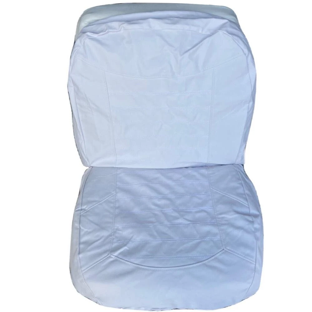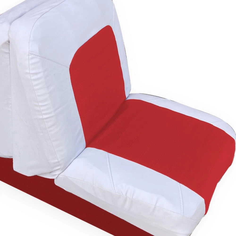 Boat Seat Cover Skin Replacements: White & Blue; White; Beige & White; Red & White Vinyl Upholstery for Marine Back-to-Back Lounge Bench Seats Please make sure the correct color scheme is selected from the drop down before ordering: Select from : Blue & White , Full White , Beige & White , Red & White Seat Covers EASILY COVER OLD BOAT SEATS FAST : Save time by easily sliding these vinyl seat cover skins over the old with the included elastic straps or staple them behind the seat for better results. 2 MARINE SEAT SKIN REPLACEMENTS : Includes a pair of seat cover skins specialty fabricated to fit each boat seat on one lounge set. UNIVERSAL FIT FOR LOUNGE BENCH SEATS & MORE : Designed to replace over old and cracking vinyl from back-to-back lounge type seats. Can also be used for many other seat types by pulling material to fit tightly. SAVE TIME & MONEY WITH SEAT SKIN REPLACEMENTS : Forget spending hundreds to thousands of dollars replacing boat seats at the upholstery shop. Simply slide these skins over to make your boat more comfortable with a better visual look. Ideal Fit: Bottom half covers (19-20" wide x 16-18" depth); Top half (19-20" wide x 18-19" tall). Simply contact us if there are any issues or the boat seat covers don't work for your project. Affordable Boat Seat Skin Replacement Covers Includes 2 seat covers which fits each seat on a lounge bench seat. Easily Revive Old Seats : Now you can easily replace your old and cracking boat seat vinyl with these affordable seat skin covers. Spice Up Old Seats or Use to Protect Your Seats : They can also be used on newer boats for folks that want to preserve their high valued boat seats. These can help protect your boat seats from the sun and ensure a high resell value in the future. Seat skins come with open back design and elastic bands to make installation easier. How to Install Seat Skins : Simply slide over old seats, then choose whether to strap them together with the included elastic bands. Or use the recommended method by using a staplegun to staple the vinyl behind the seats for best fit. Please note, these seat covers are meant to be universal for all different sizes so they may not be a perfect fit. To reduce any loose areas, it is best to pull them tight and use the staplegun method to secure them. Ideal Fit: Bottom half covers (19-20" wide x 16-18" depth); Top half (19-20" wide x 18-19" tall). Seat shown in display is roughly: Bottom half (20" wide x 16" depth); Top half (20" wide x 18.5" tall)