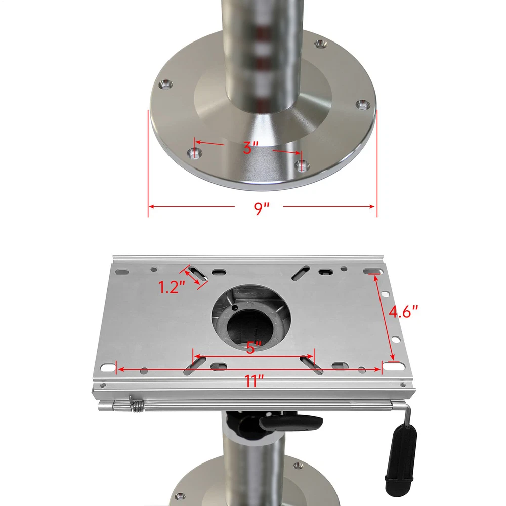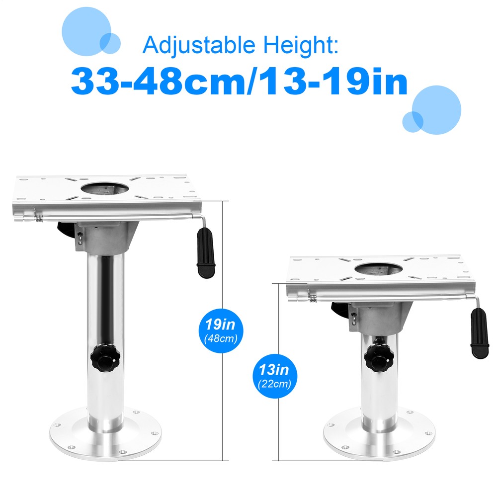 Aluminum Alloy Adjustable Height Boat Seat Pedestal 360 Swivel Fore/ Aft Slide