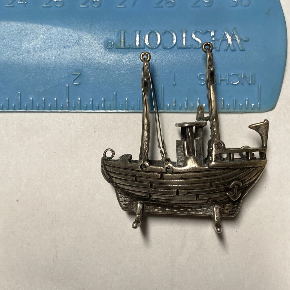 Miniature Mini Tug Boat Ship Solid Sterling Silver #230 925 Silver. Shipped with USPS Ground Advantage.