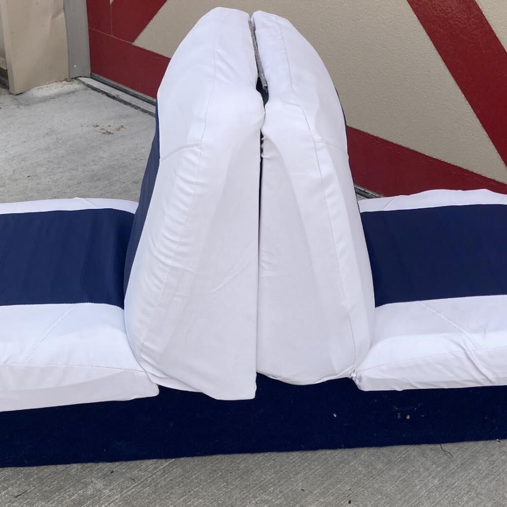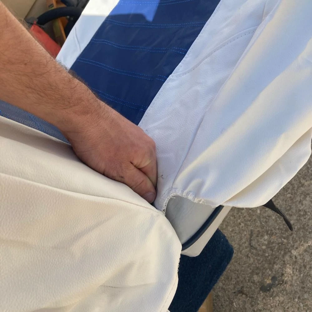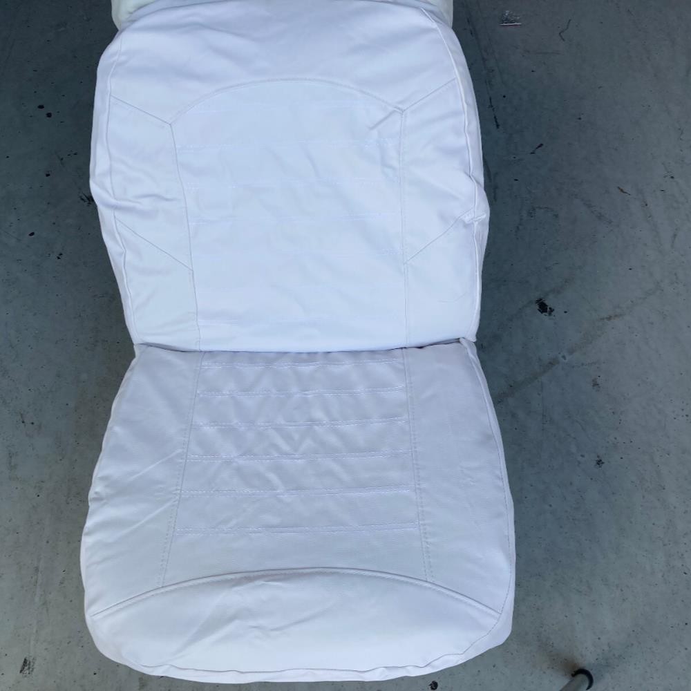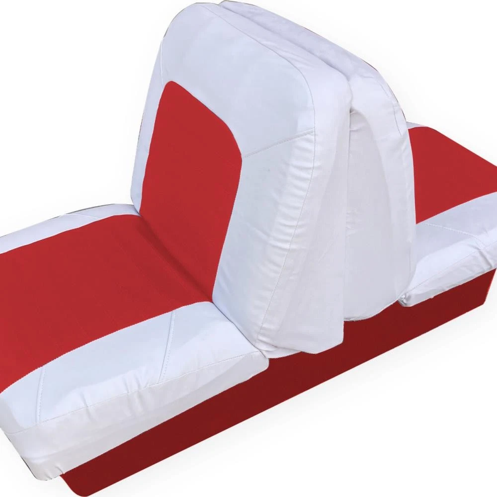Boat Seat Cover Skin Replacements: White & Blue; White; Beige & White; Red & White Vinyl Upholstery for Marine Back-to-Back Lounge Bench Seats Please make sure the correct color scheme is selected from the drop down before ordering: Select from : Blue & White , Full White , Beige & White , Red & White Seat Covers EASILY COVER OLD BOAT SEATS FAST : Save time by easily sliding these vinyl seat cover skins over the old with the included elastic straps or staple them behind the seat for better results. 2 MARINE SEAT SKIN REPLACEMENTS : Includes a pair of seat cover skins specialty fabricated to fit each boat seat on one lounge set. UNIVERSAL FIT FOR LOUNGE BENCH SEATS & MORE : Designed to replace over old and cracking vinyl from back-to-back lounge type seats. Can also be used for many other seat types by pulling material to fit tightly. SAVE TIME & MONEY WITH SEAT SKIN REPLACEMENTS : Forget spending hundreds to thousands of dollars replacing boat seats at the upholstery shop. Simply slide these skins over to make your boat more comfortable with a better visual look. Ideal Fit: Bottom half covers (19-20" wide x 16-18" depth); Top half (19-20" wide x 18-19" tall). Simply contact us if there are any issues or the boat seat covers don't work for your project. Affordable Boat Seat Skin Replacement Covers Includes 2 seat covers which fits each seat on a lounge bench seat. Easily Revive Old Seats : Now you can easily replace your old and cracking boat seat vinyl with these affordable seat skin covers. Spice Up Old Seats or Use to Protect Your Seats : They can also be used on newer boats for folks that want to preserve their high valued boat seats. These can help protect your boat seats from the sun and ensure a high resell value in the future. Seat skins come with open back design and elastic bands to make installation easier. How to Install Seat Skins : Simply slide over old seats, then choose whether to strap them together with the included elastic bands. Or use the recommended method by using a staplegun to staple the vinyl behind the seats for best fit. Please note, these seat covers are meant to be universal for all different sizes so they may not be a perfect fit. To reduce any loose areas, it is best to pull them tight and use the staplegun method to secure them. Ideal Fit: Bottom half covers (19-20" wide x 16-18" depth); Top half (19-20" wide x 18-19" tall). Seat shown in display is roughly: Bottom half (20" wide x 16" depth); Top half (20" wide x 18.5" tall) On Aug 11, 2025 at 00:55:15 PDT, seller added the following information: