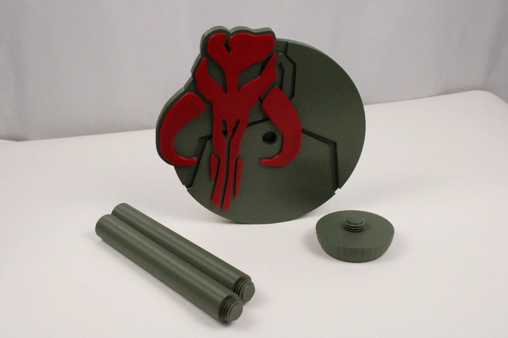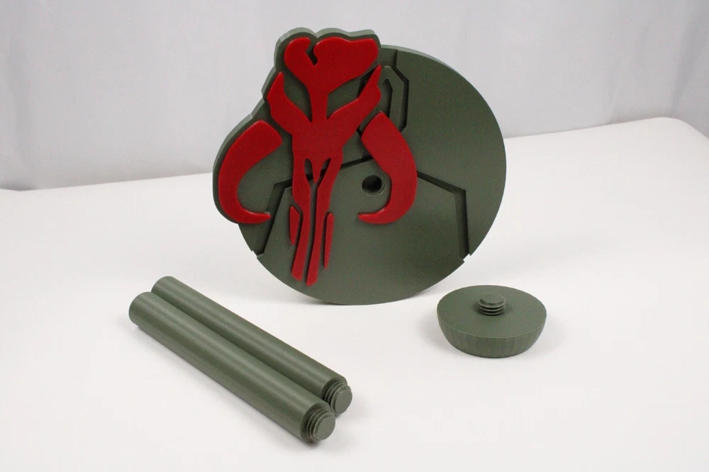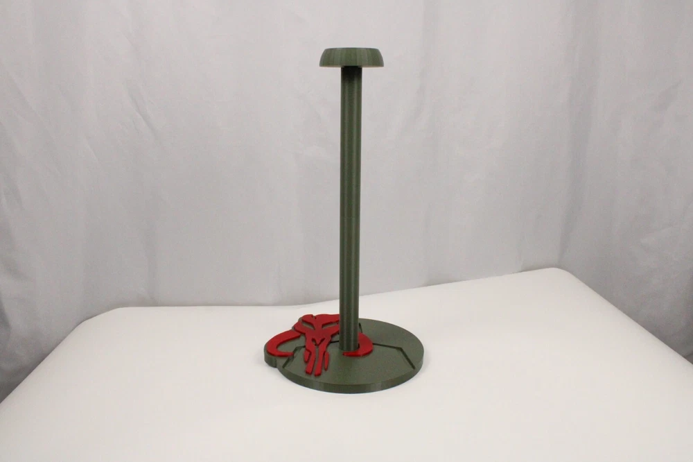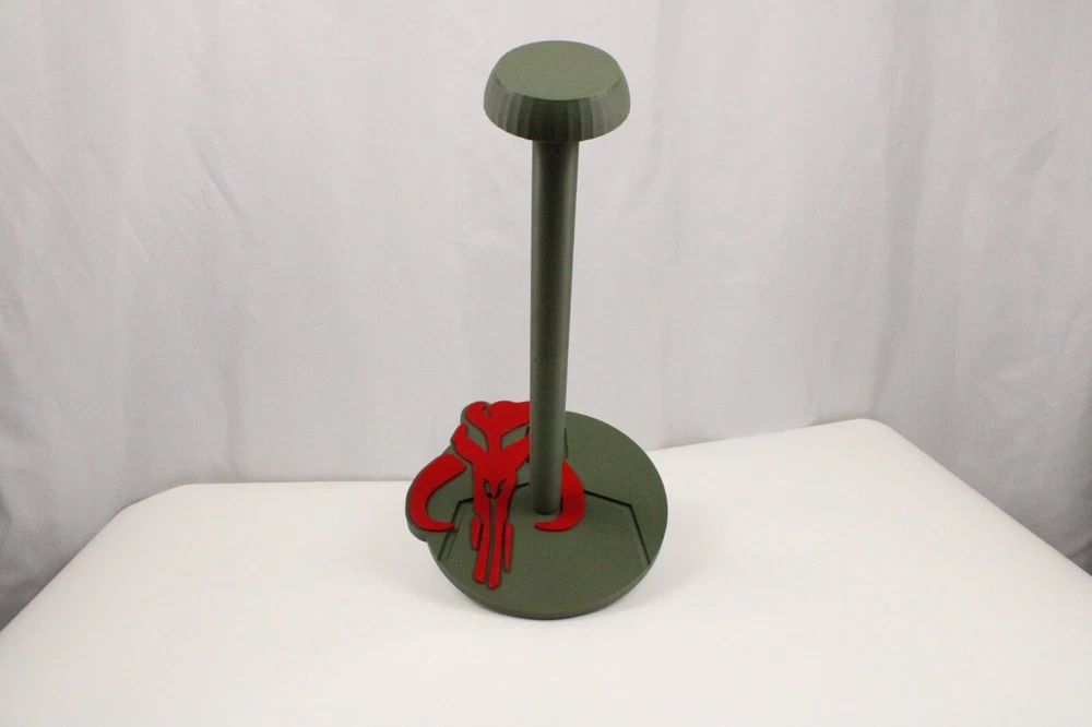Display your helmets from the Galaxy Far, Far Away! Thank you for your interest in one of our Star Wars inspired helmet stands. Each stand comes packaged as a kit and are made to order. There is some assembly and gluing required. Super glue or an equivalent is needed for a permanent bond. Please see the individual pictures for a look at the unassembled kits. This kit sits at 15 inches tall. The base is about 7.75 inches in diameter. Our 3D-printed kits are made using quality PLA+ for extra durability. Each kit includes the following: 1 x themed base 2 x poles 1 x helmet resting cap Helmet is not included