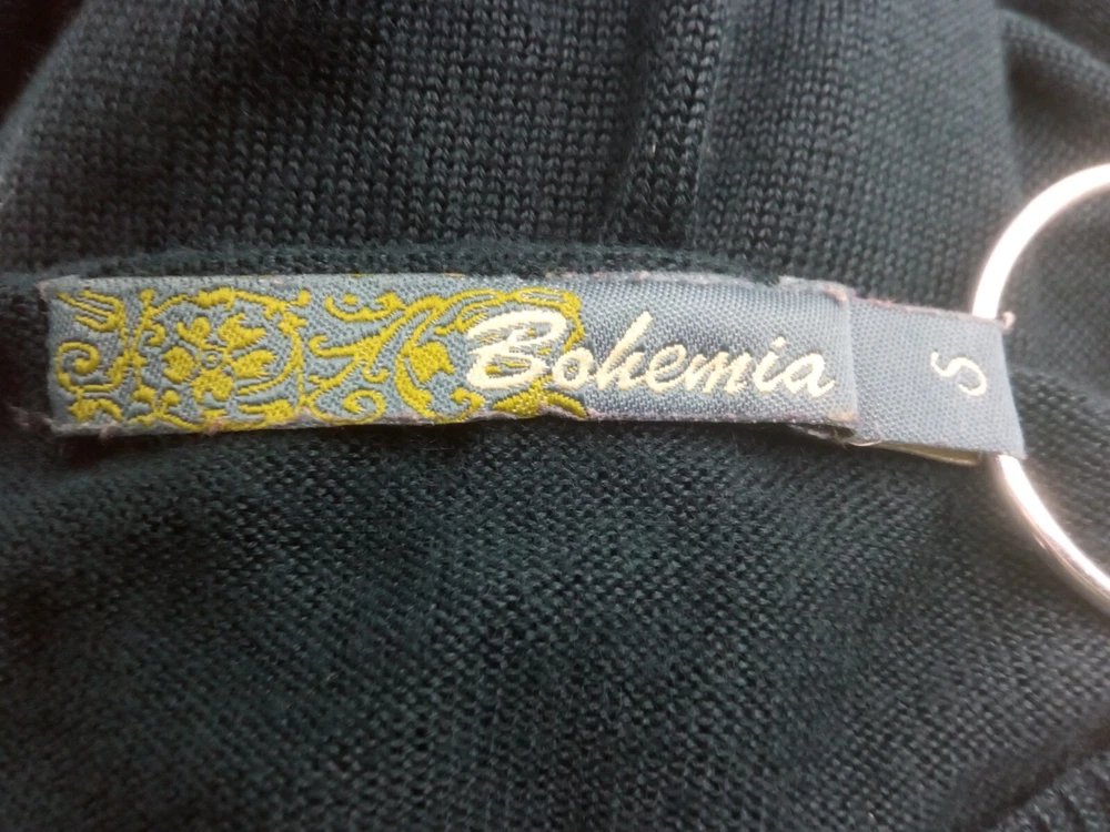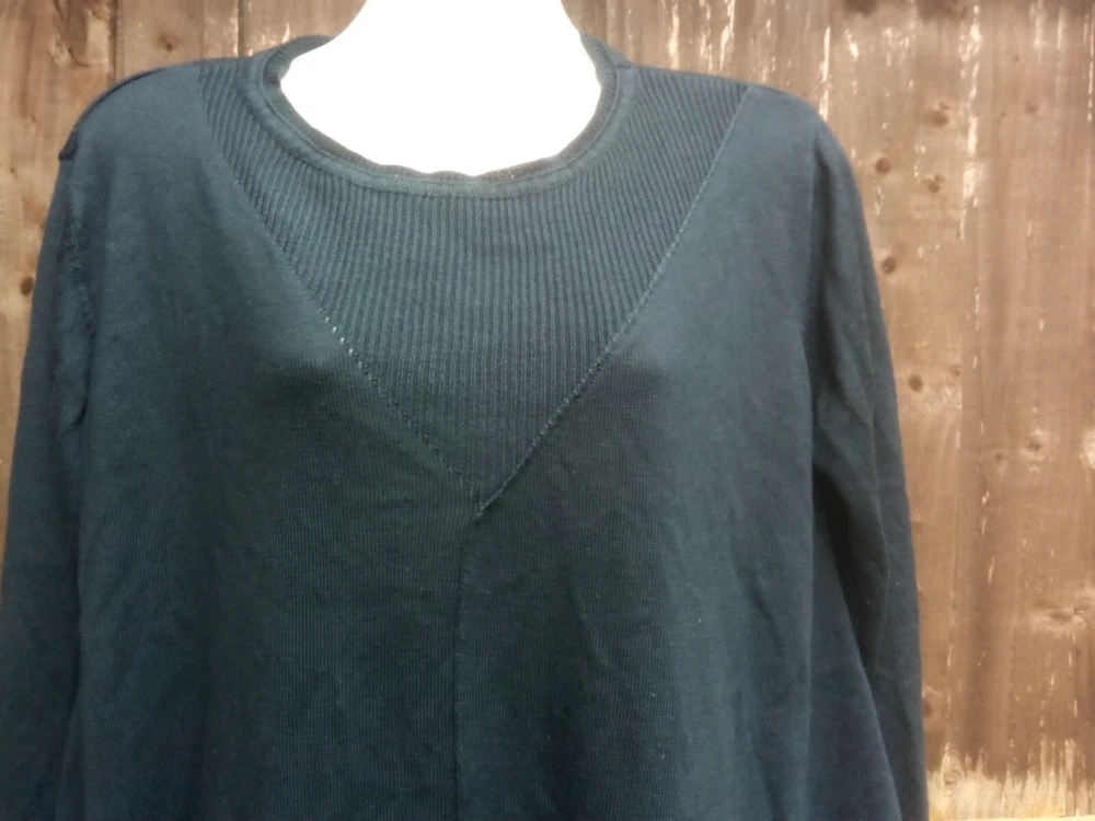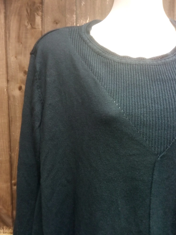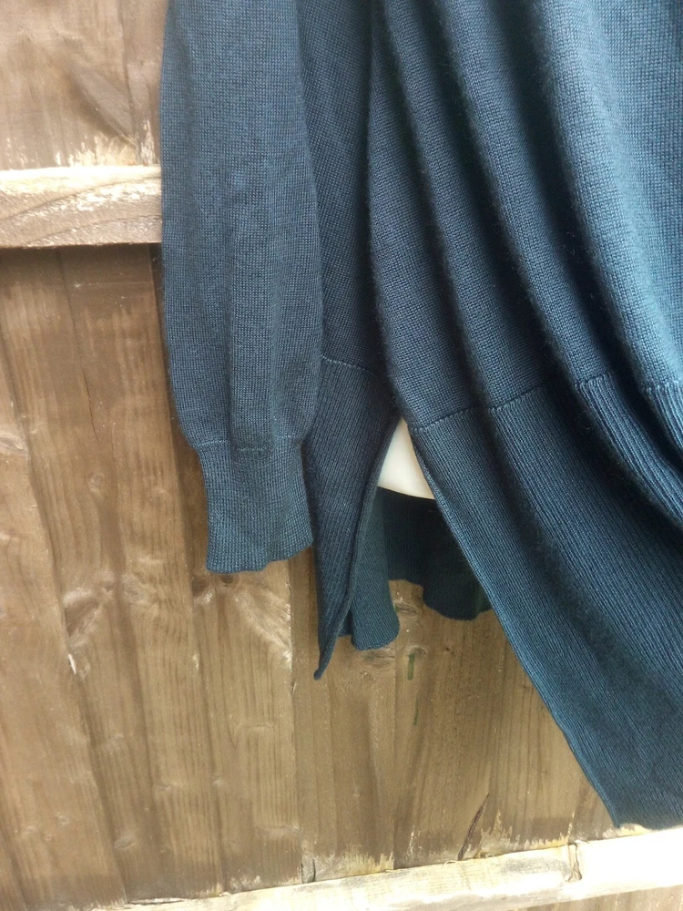 Bohemia women's wool blend long sleeve sweater UK S Green Asymmetric hem, side vented 22'' pit to pit 32'' from neck to bottom hem sleeve length is 23'' In very good+ used condition, very light wear