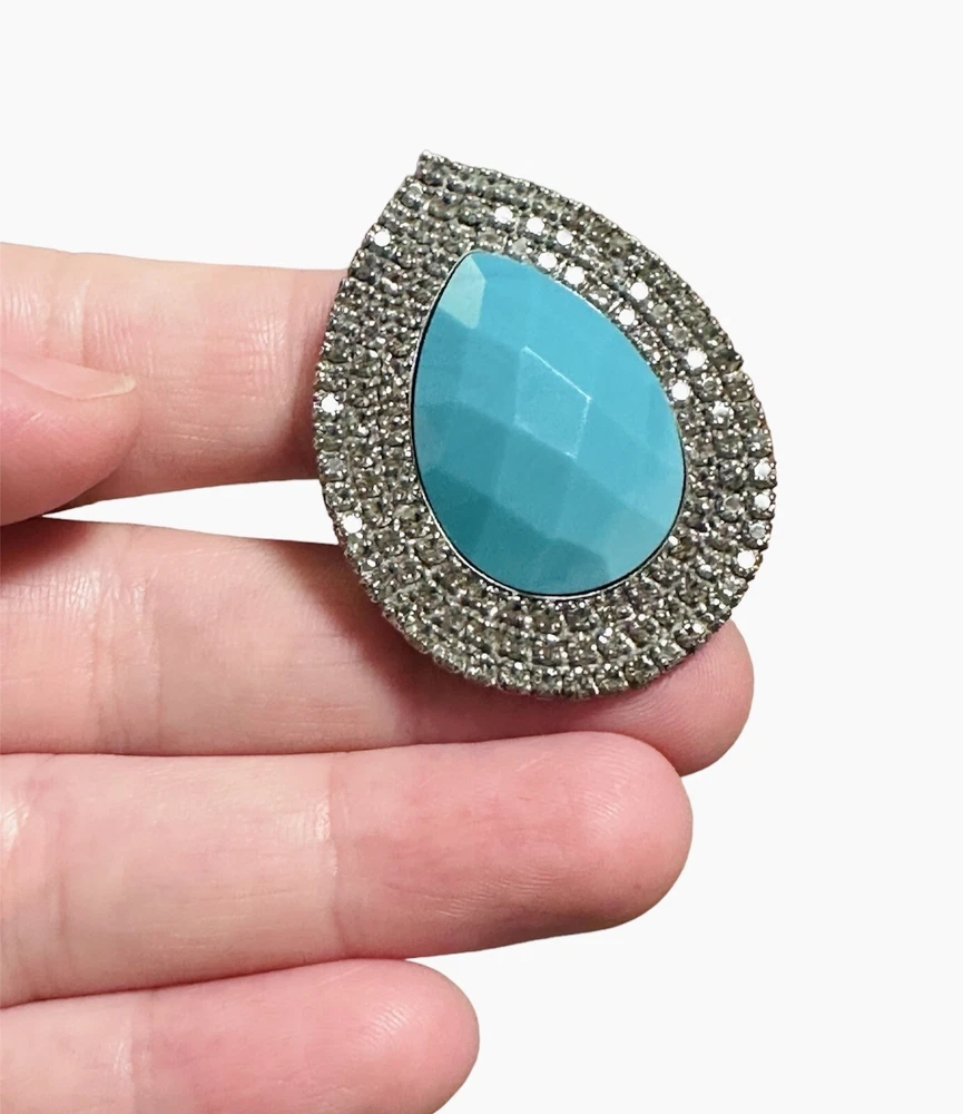 Pre-loved - in very good condition - Bohemian Bardot Style Fashion Stone Turquoise Rhinestone Ring. Made in Brazil. Adjustable sizing - No stones missing - Elegant and beautiful! The only fault is the back where you can see the wear.