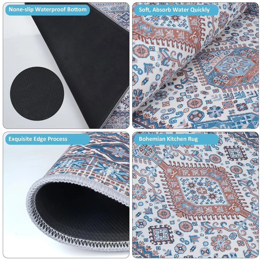 Boho Kitchen Rug Mat 3 Piece Farmhouse Rugs and Runners Non Slip Washable Floor Carpets for Entryway Hallway Laundry Living Room(B-r-Grayish) Product Details Color: Blue-red-grayis Brand: Ferites MPN: kitchen mat- father UPC: 653998349349 EAN: 0653998349349 Brand: Ferites Size: 20"x32"+20"x49"+20"x60" Material: Polyester Weave Type: Flat Woven Item Weight: 6 Pounds Brand: Ferites Size: 20"x32"+20"x49"+20"x60" Material: Polyester Weave Type: Flat Woven Item Weight: 6 Pounds Pile Height: Medium Pile Construction Type: Handmade Back Material Type: Rubber Color: Blue-red-grayis Indoor/Outdoor Usage: Indoor Theme: Floral Is Stain Resistant: Yes Product Care Instructions: Machine Wash Pattern: Geometric Shape: Square Special Feature: Non Slip Room Type: Kitchen Product Dimensions: 60"L x 20"W Rug Form Type: Runner Number of Pieces: 3 Item Thickness: 0.1 Inches Water Resistance Level: Water Resistant Is Autographed: No Model Name: kitchen mat- father Age Range (Description): Adult UPC: 653998349349 Item Weight: 5.95 pounds Manufacturer: Ferites Country of Origin: China Item model number: kitchen mat- father Date First Available: November 10, 2023 Farmhouse-stly Kitchen Rugs Sets 3 Piece: 3 piece kitchen floor mat which measures 20"x32"+20"x49"+20"x60", featuring farmhouse-inspired designs and bohemian flair, adds a touch of style to your space. Elevate your kitchen aesthetic effortlessly. Durable Kitchen Mat for Longevity: Our kitchen rug set made of polyester material that withstand daily wear and tear. With classic printing and dyeing process, non-fading and non-shrink, protect your kitchen floor dry and clean from moisture and stain. Non-Slip Kitchen rug Set with Runner: The back of our non-slip rugs and runners designed with concave-convex soft diatom mud material, It is heavier and more slip resistant than ordinary farmhouse kitchen rugs. grip the ground firmly, stay in place and doesn't slide around and protect your families' safety. Easy to Clean and Maintain: This washable kitchen rugs support machine wash separately in cold water. Use mild detergent or simply wipe dirt off with a hand-held vacuum. Do not bleach or dry clean. Do not use fabric softeners or dryer sheets. No ironing, anti-exposure. Do not wring, line dry for best results. Versatile Rubber Kitchen Carpet Mat: Beyond the kitchen, boho kitchen mat set of 3 seamlessly fit into various spaces like the laundry room,living room, home decor, entryway rug, indoor door mat, hallway carpet runner, bathroom mats, providing comfort and style wherever you need it.