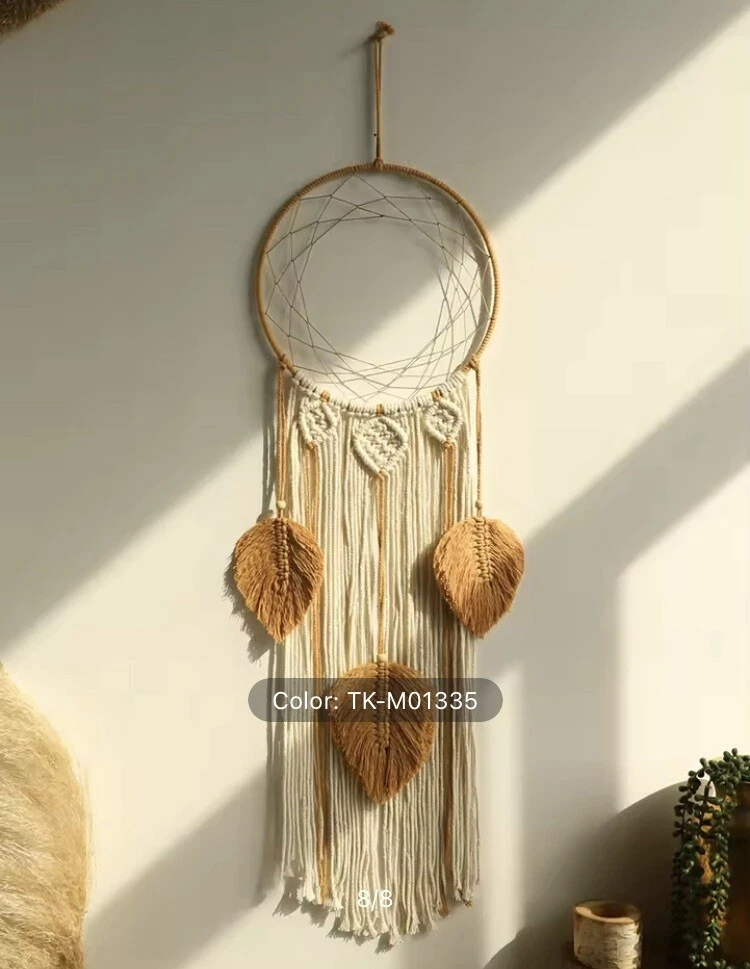✨ Handmade Boho Macrame Dream Catcher – Elegant Wall Hanging Décor ✨ Transform your space with this stunning handcrafted macrame dream catcher, designed to bring warmth, serenity, and bohemian elegance into your home. Featuring delicate woven cotton leaves and a beautifully intricate design, this piece is perfect for boho, rustic, and minimalist aesthetics. 🌿 Perfect for: ✔ Bedroom & Living Room Décor ✔ Meditation & Zen Spaces ✔ Boho Weddings & Housewarming Gifts ✔ Dream Catcher & Spiritual Wall Art 🛠 Product Details: ✔ Material: 100% Handmade Woven Cotton Rope ✔ Size: 85cm x 30cm (33.5in x 11.8in) ✔ Lightweight & Easy to Hang ✔ Eco-Friendly & Natural Fibers 💡 Why You’ll Love It: ✔ Handcrafted with Love – Each piece is uniquely woven for a one-of-a-kind feel. ✔ Aesthetic & Trending – The perfect touch for boho, farmhouse, and minimalist homes. ✔ Premium Quality – Durable, soft macrame cotton for a cozy and elegant vibe. ✔ Gift-Ready – A thoughtful, unique gift for free spirits and décor lovers. 🚚 Shipping & Returns: ✅ FREE Shipping! (Included in the price) ✅ Processing Time: 1-2 Business Days ✅ Estimated Delivery: 7-14 Days ✅ 100% Satisfaction Guarantee – Hassle-Free Returns 🎁 Limited Stock Available – Order Now to Elevate Your Space! 🎁