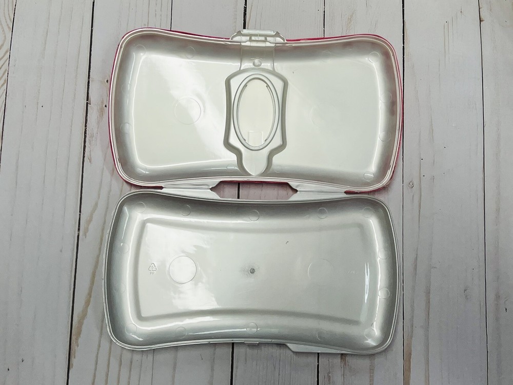 Super cute personalized travel size wipe case with a pretty pink floral print fabric. Wipe case can be personalized with your choice of 1-2 names. Wipe case is slim and compact. It is padded with fabric on both sides and finished with a grosgrain ribbon. These make really nice and unique baby shower gifts. *The pop up center lid will not be usable once I put fabric over it. But this is the only style I have found. Approximate size: 8.5" x 5" x 1"