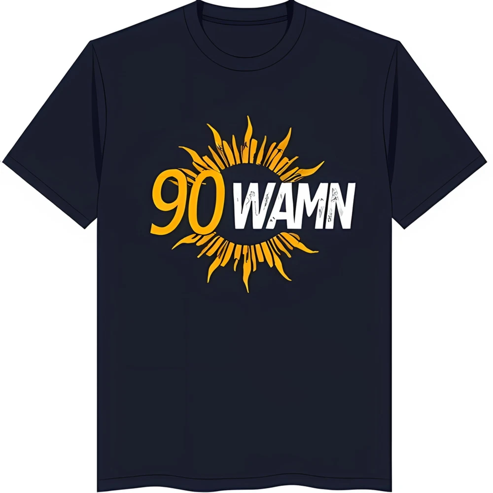 Bold Black T-Shirt with Striking Yellow Sun Graphic & '90 WAMN' Text
