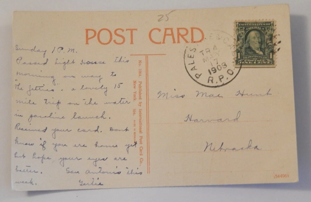 Bolivar Point Lighthouse postcard Galveston Texas 1908 vintage