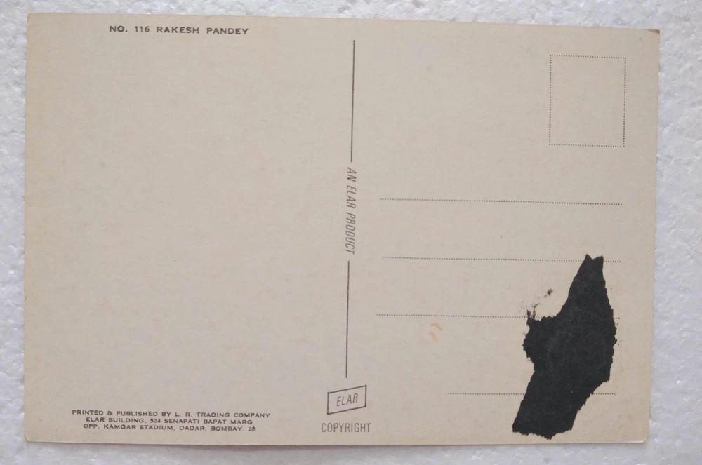 Bollywood Superstar Actor Original POSTCARD Post Card Rakesh Pandey Check images closely! Condition as per scan! A small piece of black paper stuck at the backside of card. Size: 9.5 cms X 14 cms Rare and Vintage Post card in good condition! These post cards are very rare and old and not easily available! Very hard to find! Please look at the front and back image closely before buying WORLDWIDE SHIPPING FREE ! Shipping By REGISTERED POST