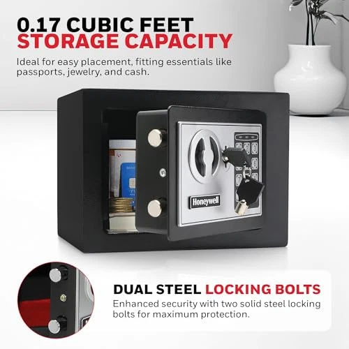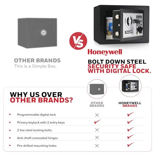 This Honeywell safe box is a game-changer for home security! The solid steel construction feels incredibly sturdy, and the digital lock is super easy to use—no more fumbling with keys. I love that it bolts down, adding extra peace of mind. Perfect size for documents, jewelry, or small electronics. Sleek design blends well in any room. Highly recommend for keeping valuables safe!