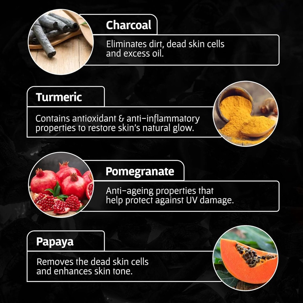 About this item ACTIVATED CHARCOAL FACE WASH: Purifying and deep cleansing for refreshed and healthy skin. ANTI-POLLUTION: Removes dirt, pollution and dust from the skin’s surface for natural glow. ANTI-ACNE: Helps control excess oil and helps prevent future outbreaks. GENTLE ON SKIN: SLS & Paraben free formula for damage-free skin. Pack of 2. Suitable for all skin types. Ingredients: Charcoal Product description A pack of 2 activated charcoal face washes to deep cleanse and refresh your skin. Activated bamboo charcoal eliminates dirt, dead skin cells and excess oil to help cleanse oily, acne-prone or dry skin. This charcoal face wash for men, with bamboo charcoal, has anti-pollution properties and helps visibly reduce blackheads, dark spots, pimples and other blemishes with regular use. Activated bamboo charcoal can work wonders for your complexion and consequently, your confidence. Our charcoal skincare range is built with natural, restorative ingredients to keep your skin looking its best in the face of everyday dust, pollution and sun damage. Our charcoal face wash for women is sls & paraben-free. From the manufacturer 100% NATURAL & SUSTAINABLE Made from Moso, the fastest-growing bamboo species in sustainable plantations in Tripura. ITS ABSORPTION SKILLS ARE JUST AWESOME Compared to activated charcoal, our bamboo charcoal has four times more absorption ability! GREAT FOR ACNE-PRONE SKIN Its anti-fungal properties make it perfect for getting rid of acne and pimples.
