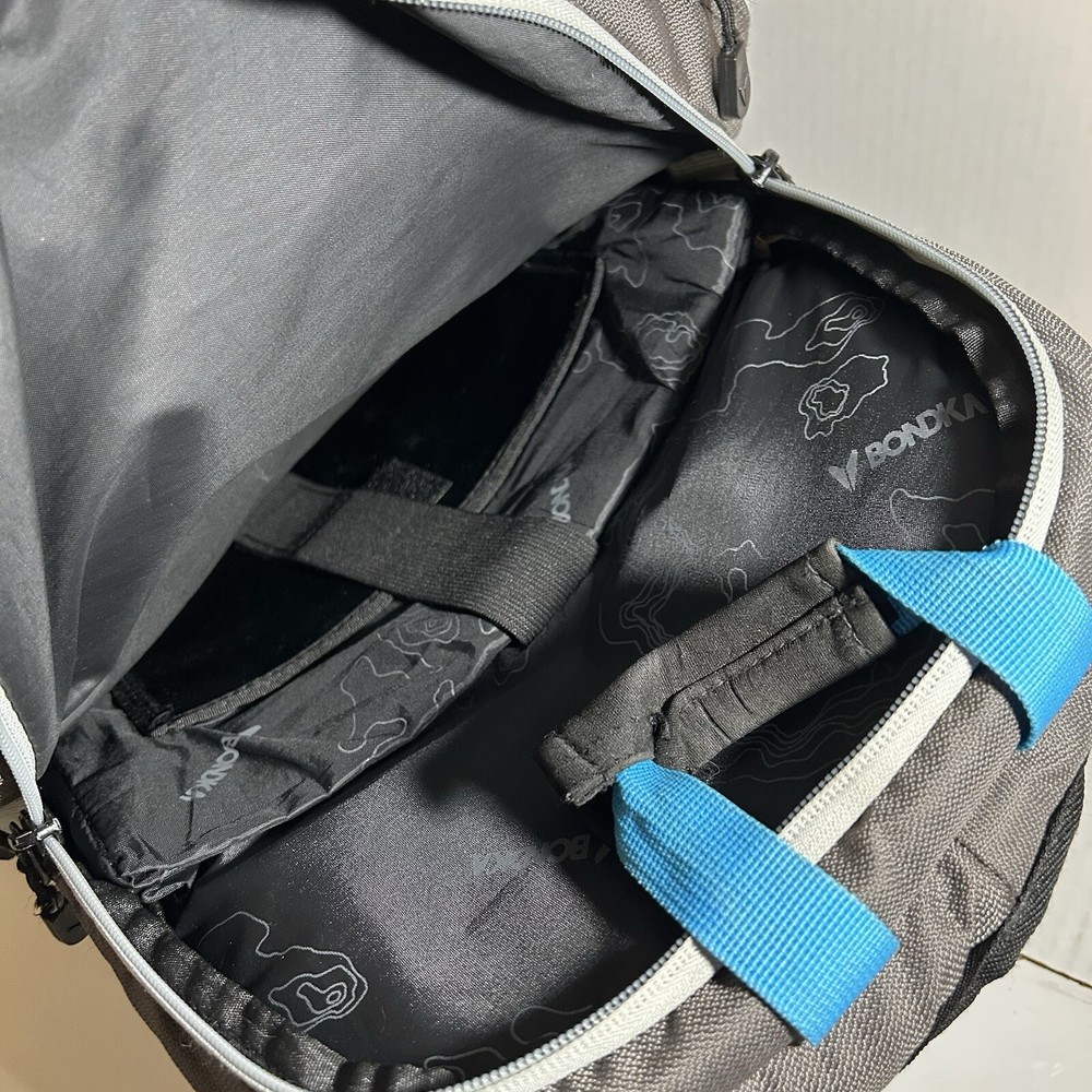 Bondka Eolus Backpack in Grey/Blue/Black is in good condition, with a small hole in the side pocket and light staining and marks on the front blue part from age and wear. Please see Photos for Condition of Backpack. The Bondka 19.5" Eolus Backpack in Grey/Blue/Black is designed for school and everyday use. This backpack, suitable for men, features adjustable straps for a comfortable fit and a laptop sleeve for protection. Made of polyester material, it offers ample storage space and organizational pockets. The stylish blue accents on the grey and black exterior give it a modern and versatile look, making it a practical choice for carrying essentials while on the go.