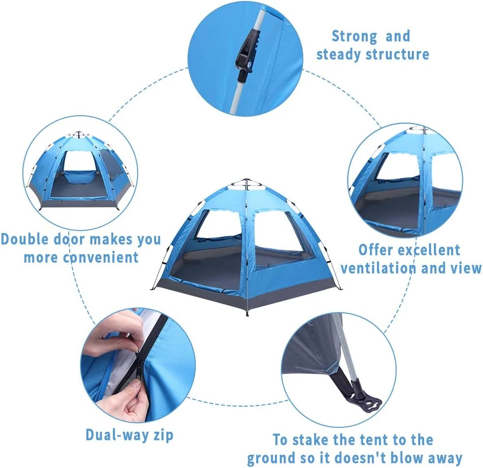 Store New Arrivals Add to Favorite View Feedback Contact Bonnlo 3-4 Person Automatic Family Tent Easy Setup, Instant Pop up Shelter with Carrying Bag, Anti-Uv Protection Waterproof for Camping Hiking Travel Outdoor Activities Description Style Modern Cabin Water Resistance Technology 1500 mm Occupancy 4 Person Occupant Capacity 4 Number of Rooms 1 Maximum Height 140 Centimeters Assembly Required No Special Feature Water-Resistant, Windproof, Waterproof, Lightweight, Pop Up, UVProtection Product Dimensions 110.24"L x 96.46"W x 55.12"H Material Polyester, Polyethylene Number of Windows 2 Installation Type Easy Setup, Instant, Pop Up, Automatic Age Range (Description) Adult Seasons 4 Season Tent Floor Material Polyethylene Form Factor cabin-style Manufacturer Bonnlo Closure Type Zipper Included Components Carry Bag, Rope, Stakes Water Resistance Level Waterproof Fabric Type Polyester,Mesh Ultraviolet Light Protection true Rainfly Material Polyester Number Of Poles 4 Floor Width 96.46 Inches Brand Name Bonnlo Is Waterproof True Minimum Trail Weight 125 Ounces Base Material fabric, polyester Pole Material Type Fiberglass Shape Rectangular Design Camping Tent Recommended Uses For Product Travel, Picnic, Climbing, Camping & Hiking, Fishing, Camping Sport Climbing, Camping & Hiking, Hiking Brand Bonnlo Product Care Instructions Hand Wash Stake Material Metal, Fiberglass Polyester,Mesh HIGH-CLASS MATERIALS: This camping tent is made of advanced weather-resistant 180T silver coasting polyester fabric. Durable and lightweight fiberglass frame poles, water resistant PE floor, multiple metal stakes and windproof ropes make it more reliable while in use. All the materials used are odorless and non-toxic and protect you from sun or rain.Waterproof Rate: 1500-2000mm UNIQUE DESIGN: Two breathable mesh windows design keeps insects away and and allow you to enjoy the beautiful scenery at the same time. Spider foot structure makes the tent even more stable EXTRA LARGE ROOM SPACE: Product dimension 280*245*140 cm. This instant tent provides spacious interior space for you and your families/friends up to 4 members ULTRA LIGHTWEIGHT: This sport tent is weighted less than 7.8lbs, a carrying bag included in the package for compact storage and easy transport. Perfect choice for hiking, climbing, camping, fishing, music festival, picnic, road trip, kids backyard play zone and other outdoor activities. Folding dimension: 79 x14 x14 cm SIMPLE ASSEMBLY: No more trouble on setting up a camping tent if you choose our product. Seriously automatic pop up in seconds whenever you need it. To take it away, just simply fold down the fabric and poles toward the hub and roll the tent into the carrying bag ABOUT US We offer the best prices around on high quality products. Our E-store includes media such as books, movies, music and games while offering electronics, toys, sporting apparel, clothing, tools, general home, garden items and more. SHIPPING We are always working hard to ensure your package arrives as soon as possible. Please understand that some factors like weather, high postal traffic, and the performance of shipping companies are outside of our control. We offer free shipping to the lower 48 states and ship within 2 business days of payment, usually sooner. We do not accept P.O. Boxes. Please provide a physical address. RETURNS We offer a 30-Day Return Policy on items which you are not completely satisfied with. You have the option for a full-refund or an exchange of the item. No returns are available on items shipped outside of the USA. PAYMENT We accept PayPal. CONTACT US This page content is yet to come Please ad us to your favorite seller and visit again later Thank You CUSTOMER SATISFACTION We try our very best to make sure every customer is completely satisfied. If there's a problem, message us! We're happy to help.