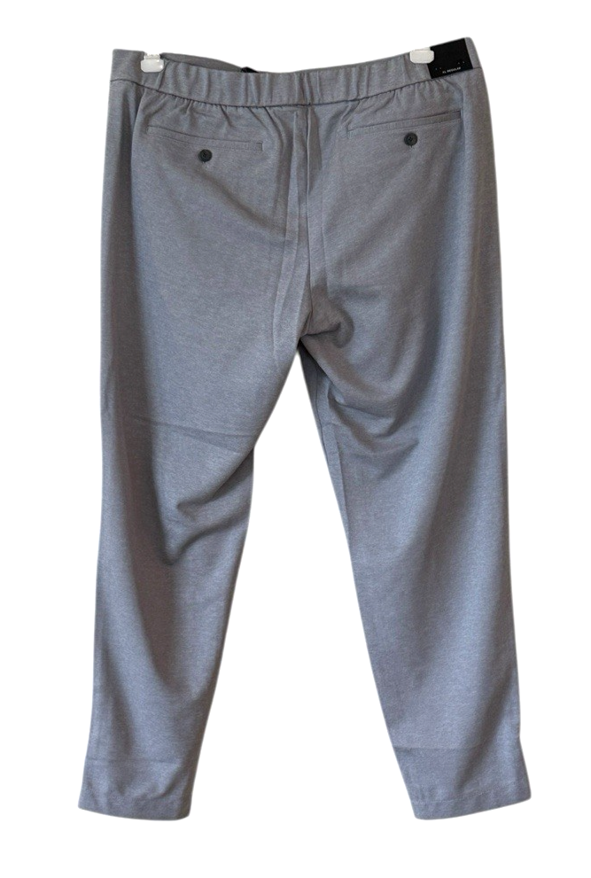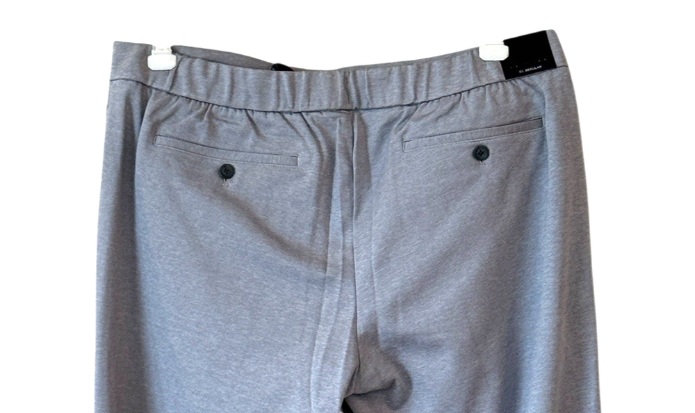 The Bonobos All Week Flex Pants in Heathered Steel Gray are versatile and stylish options for men looking for comfortable and practical clothing. With a tapered leg and mid-rise fit, these pants feature an elastic waist with a drawstring closure for a customized and secure fit. The knit fabric and polyester material make them suitable for various occasions, from casual outings to workwear. Additionally, the slash pockets, button and zipper accents, and gray color add a touch of style to these chino-style pants from the Bonobos Weekday Warrior collection.Has a drawstring in the interior for waist sizings. Ideal for men who appreciate both fashion and functionality in their wardrobe choices. - Size Extra Large Regular - Color Gray - New with tags. In original bag - Material and care tag in photo - Measurements approx laying flat Inseam 31" Waist 20" with drawstring to cinched. - Smoke free home