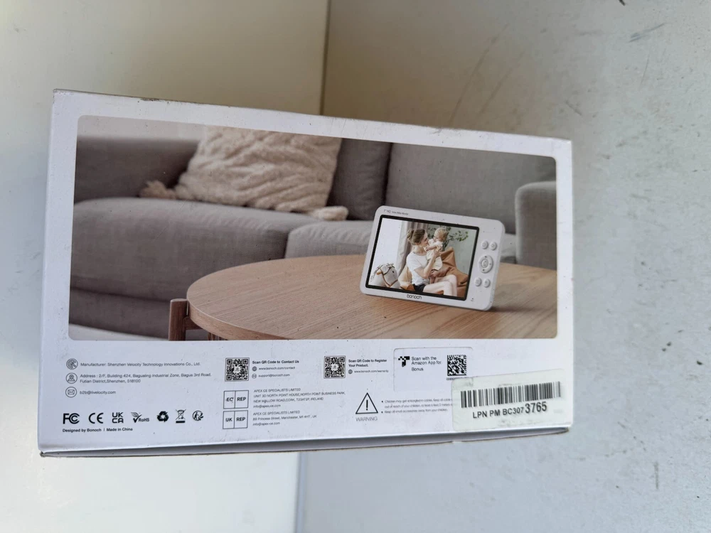Bonoch BBM03 Video Baby Monitor White 7" Touchscreen Temperature Sensor 720p HD Description Bonoch BBM03 Video Baby Monitor White 7" Touchscreen Temperature Sensor 720p HD . Product Detail • Brand : Bonoch • Model : Bonoch BBM03 • Color: White • Type : Baby Monitor Please message me if you have any questions.