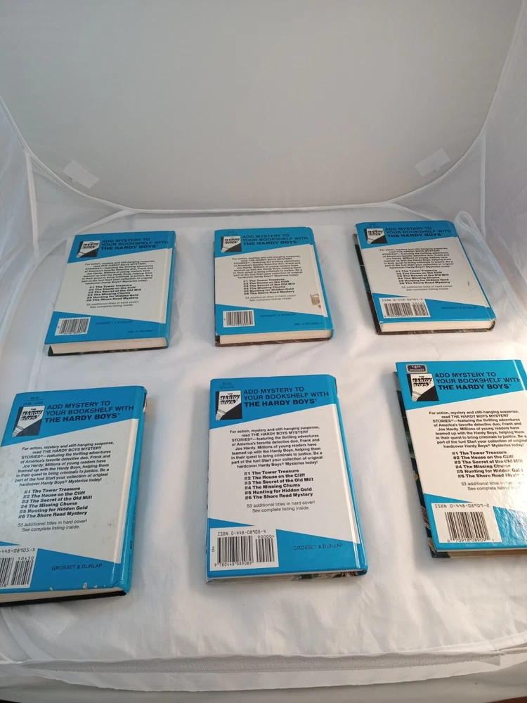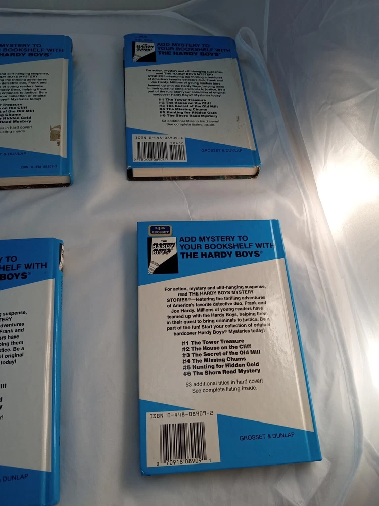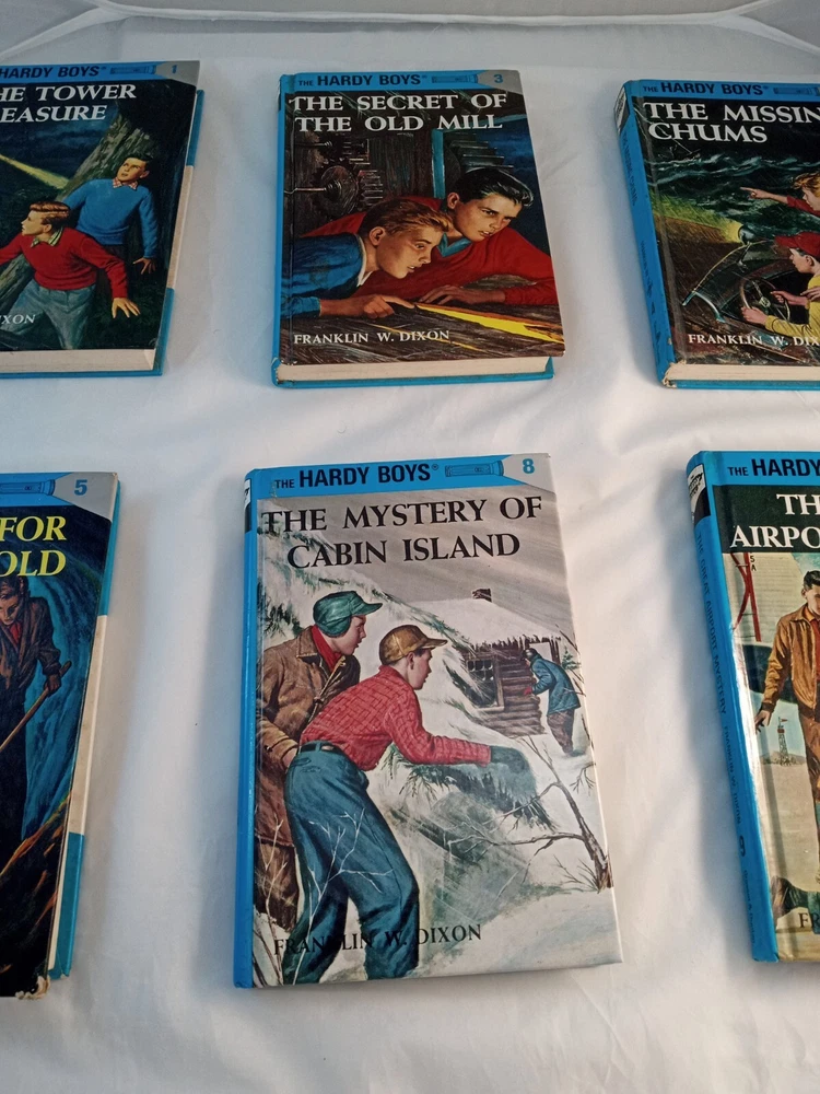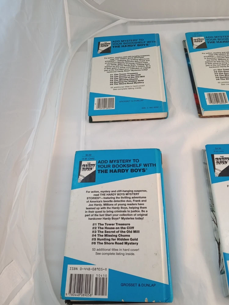 This lot consists of five vintage Hardy Boys books published by Grosset & Dunlap. The books are hardcover and written in English by Franklin W Dixon. They belong to the Antiquarian & Collectible category and are perfect for fans of the Hardy Boys character family. The books are in good condition and are a great addition to any book collection.