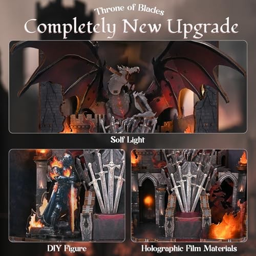 Return Policy Fast Delivery Trusted seller Book Nook Kit - DIY Miniature House for Adults and Teens, Booknook Tiny House Bookshelf Decor (Throne of Blade) Product Description BOOK NOOK KIT: Throne of Blades" booknook forges a realm woven through with dragonfire: countless blades, fused by draconic breath, converge into a throne of steel, its edges gleaming with residual radiance as if cradling slumbering flames. An ancient dragon coils behind it, casting a formidable shadow, while eternal fire pulses within its baleful eyes—together proclaiming the conqueror's resolve, the judgment of dragonkind, and an eternal sovereignty tempered in blood and fire ?Newly Upgraded: This set includes a figure. You could place the figure forendless fun as you like! What more isthat the book nook features a newly upgraded design in materials,now incorporating a holographic film to give them a premium andsparkling visual effect ?Fun Designed Book Nook Kit: The booknook is made from wood, it is high quality and durable. Every piece is pre-cut and pre-colored, it mostly snaps together instead of being glued together. T is also a step by step colored instruction to follow it when set up ?Assembly Friendly for Puzzle and Craft Beginners: The book nook easy to assembly and friendly for book nook kit beginners and teenagers who enjoys crafting and loves a touch of whimsy. It takes about 1-2 hours to build the miniature kit. It can be a shared teen and adult bonding project which combination of a puzzle and a scale model ?Creative Craft Kit for Adults and Teenagers: The DIY miniature puzzle provides a cozy little nook that you can customize with your own decorations, it will relief your stress and provide you an immersive experience, a nice choice for adult craft activity ☎️Warm Notice: The Booknook Bookshelf Insert Decor Alley has been 100% carefully checked before delivery to ensure that the accessories are complete and not missing. Feel free to contact us if you have any questions during assembly, we will solve any problems as soon as possible. Note: You need to prepare 2 batteries (type AAA) by yourself Shipping Returns Payment Shipping Shipping is FREE to all addresses other than APO/PO boxes in the lower 48 states. All our stock ships from US-based warehouses. Shipped via USPS or UPS (depending on location and package weight) Unless stated otherwise, all orders will ship within 24-72 hours of your payment being processed. Check our feedback to see the great reviews of FAST shipping we offer. Returns Seller does not accept returns Payment We currently accept payment via eBay managed payments only. Once payment is cleared, we will dispatch your shipment within 1-3 business days. Please refer to the "Shipping" tab for more information regarding shipping speed to your destination.