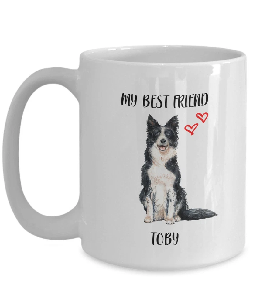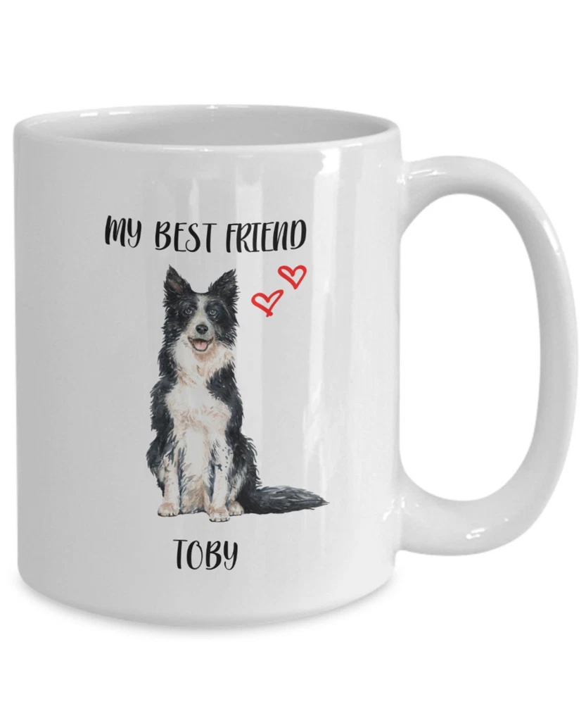 Border Colliecustom Pet Name Dog Name Personalized Dog Name Mug Coffee Mug Dog Lover Mug Pet Lover Gift Gift Idea Dog Mom Dog Dad Product Details.. This high quality 11oz. ceramic white mug has a premium hard coat that provides crisp and vibrant color reproduction sure to last for years. Perfect for all hot & cold beverages. The highest quality printing possible is used. It will never fade no matter how many times you wash it. Material: 100% Ceramic. Print both sides. Dishwasher and Microwave Safe. High Gloss + Premium White Finish. Printed in the U.S.A. Personalized & Custom. We support personalized and custom mug to add custom, when placing an order, you can add notes to the "order note" in shipping address section. Also you can contact us directly via message. Shipping Info. Ready to ship in 1 to 2 business days, All products are made-to-order and proudly printed in the United States. Shipped by USPS and DHL, You will receive your order in 5-7 days. Replace & Refund. All products are defective during shipping broken, chipped will be replaced free of charge. You are not satisfied with the product, we will refund 100% money to you. If any other issues arise, please do not hesitate to message, we would be more than happy to assist you.