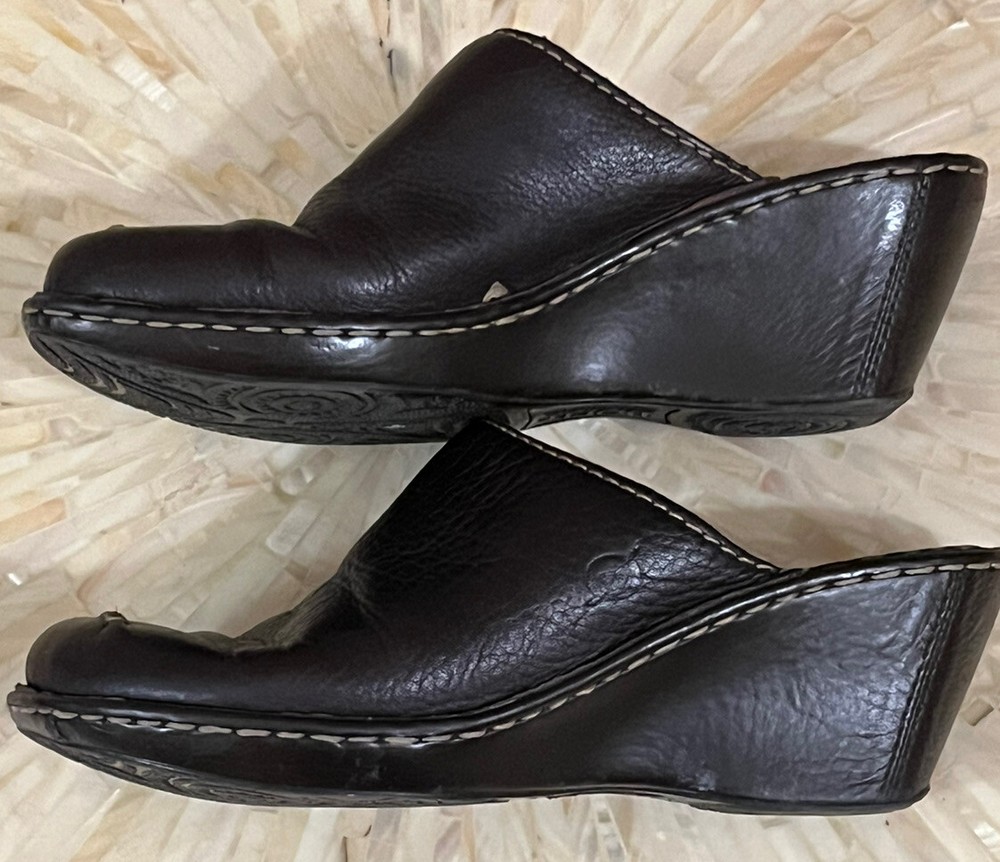 Born Shoes Womens 8 Brown Leather Leather Wedge Mule Slip On Clog Comfort