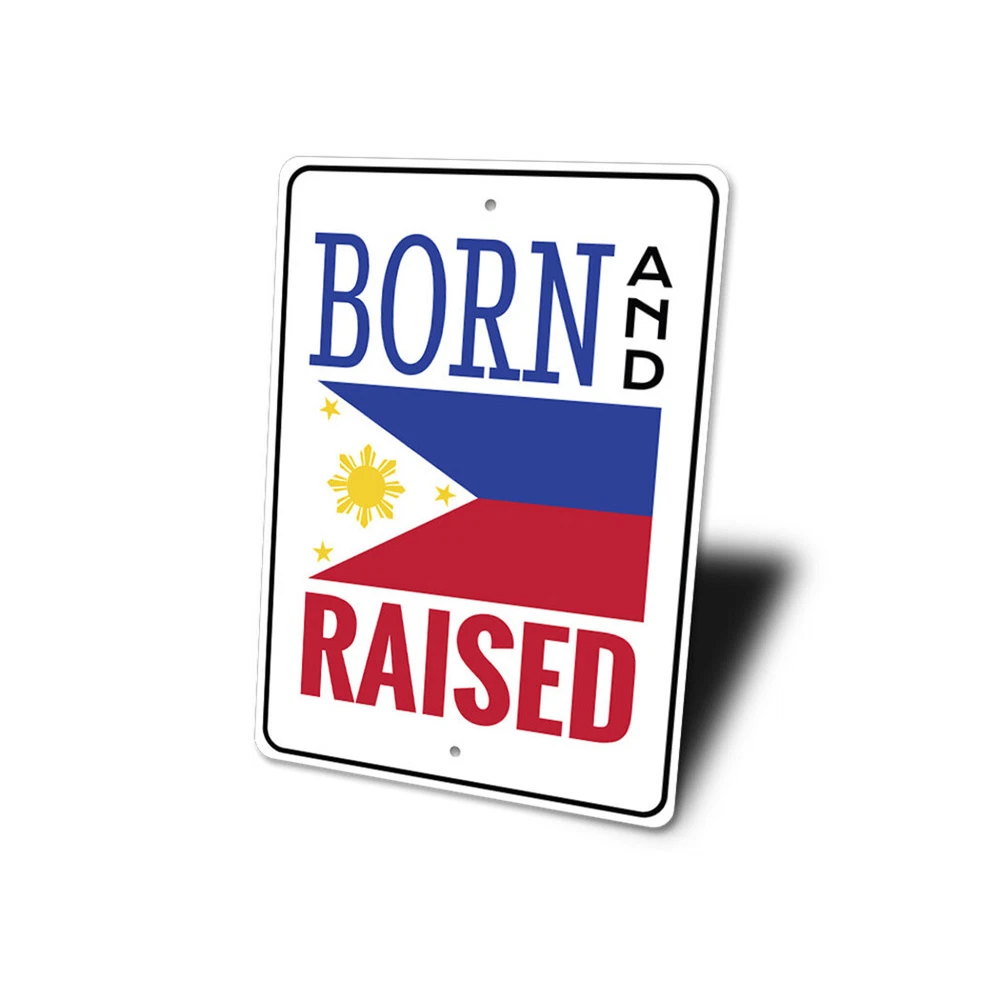 The Lizton Sign Shop Product Description Born and Raised, Filipipno Patriot Home Decor, Man Cave Pinoy Flag Metal Sign **there may be slight variations in color and text spacing, however your sign will be very similar to the image above. Quality Aluminum Street Signs Sign Information Aluminum Brand New Sign Comes with rounded corners and pre-drilled for easy hanging. We use the highest quality materials - 100% USA-made! Great Gift Idea - Our signs truly make a one of a kind gift. Personalize the sign with the text you want to add. Custom text for the sign can be sent to us via email. A BRAND NEW SIGN!! All of our street signs are made of premium materials. The sign itself is made of aluminum and will never rust providing years of enjoyment indoors and outdoors. No Cheap plastic!! The Lizton Sign Shop specializes in quality personalized custom aluminum signs for any occasion. These make the perfect sign for any man cave, office, basement, garage, college dorm, kids bedroom, game room, bar, pub, tavern or countless other places. *Colors may vary slightly from one computer screen to the next but the image should be very close. All content and designs are subject to copyright and may not be reproduced in any form. Payment Methods We would prefer payment to be made through paypal but we also accept all major credit cards. If you select the credit card option please contact us after you make your purchase and we can walk you through the steps to make a secure payment. Return Policies We will accept returns within 30 days of the purchase date. The buyer is responsible for any costs to return the item or items. Returns will only be accepted for items that were damaged in shipping or if we made an error in the manufacturing of your item, i.e. spelling error.