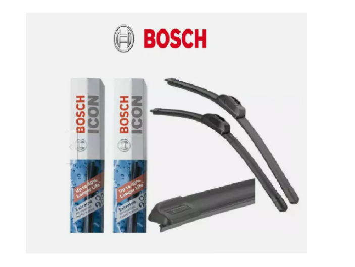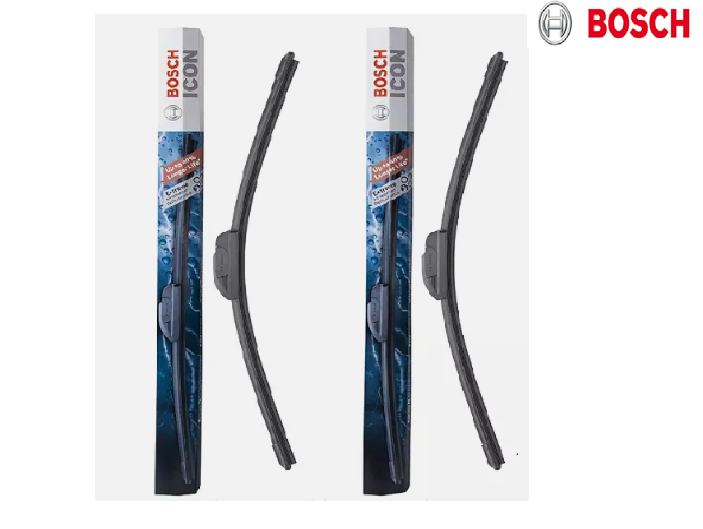 NEW BOSCH Icon Beam Windshield Wiper Blades Front 26" and 20" 2PC Set for Toyota Description 26A + 20A BOSCH Bosch ICON Wiper Blade Features and Benefits Clear Max 365 rubber technology This technology combines a soft rubber core with a powder-coated shell which Dynamic Fit technology Optimized beam bending technology adapts to the entire curve of the windshield Easy, secure installation Weather-shield, double-locking connector Extreme All Weather Performance. Tested to Perform Up to 40% Longer* Protects the wiping edge from ozone deterioration, snow, sleet, rain, and road debris for longer life* Reduces wiping friction for quieter performance Resists contaminants such as fluids, salts, insects and other road debris for streak free visibility Superior performance at all speeds Asymmetrical spoiler maintains consistent blade contact with the windshield Specifications Adapters Included No Adapters Required No Length 26 in Frame Color Black Blade Type Beam Refillable No Winter Blade No Wiper Blade Connection Type Male Pressure Point Quantity Infinite Attached Spoiler / Aerofoil Yes Heated (Wiper Blade) No Private Brand? No Prop 65 Warning Label Required? No Quick Connect Hardware Included Yes Wiper Blade Design All-Season Wiper Blade Material EPDM Wiping Edges 1 RETURN POLICY YOU MUST CONTACT US BEFORE RETURNING A PART. IF ANT PART IS DEFECTIVE WE CAN ONLY EXCHANGE IT. A 15% RESTOCKING FEE IS APPLICABLE UNLESS WE SEND YOU A WRONG DOES NOT FIT YOUR CAR. Shipping Information WE OFFER FREE SHIPPING TO LOWER 48 STATES, PUERTO RICO, ALASKA, HAWAII, US PROTECTORATES, APO/FPO MAY NEED TO PAY AND EXTRA SHIPPING COST ON ITEMS OVER 1 POUND( 1LB).