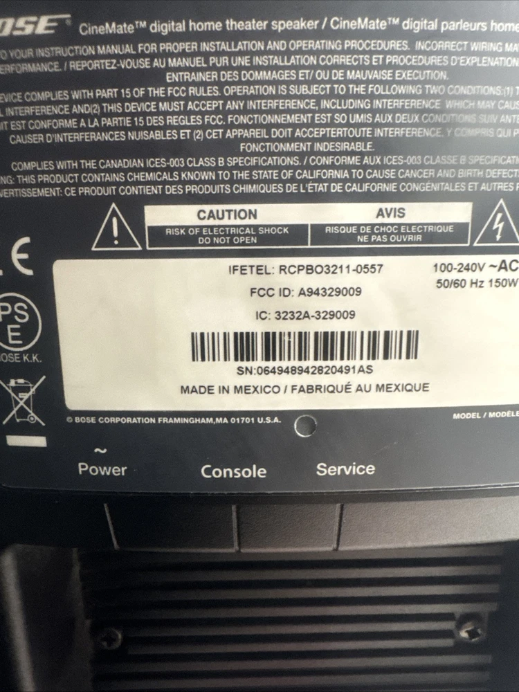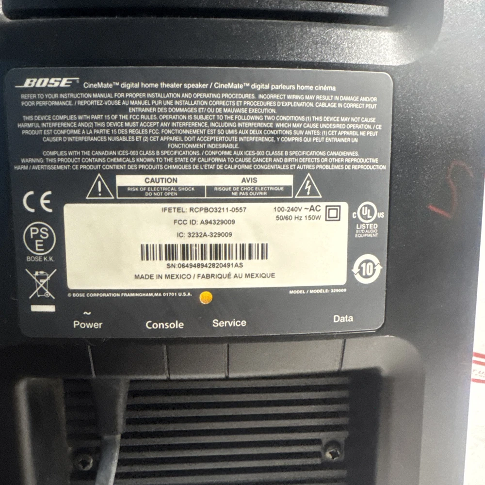 Bose CineMate Digital Home Theater 329009 SN:064948942820491AS Subwoofer Only. All comes as seen in the pictures of the item listing for sale with only power cord and no other accessories are not included.