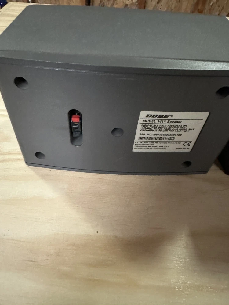 Model:Bose Model 141Connectivity:WiredAudio Inputs:Stereo WireCompatible Model:BoseCompatible Brand:UniversalImpedance:Rated from 4-8 OhmsBrand:BoseType:Bookshelf SpeakersUPC:Does not applyShape:RectangularColor:Graygtin13:Does not applyFeatures:Compact, High End