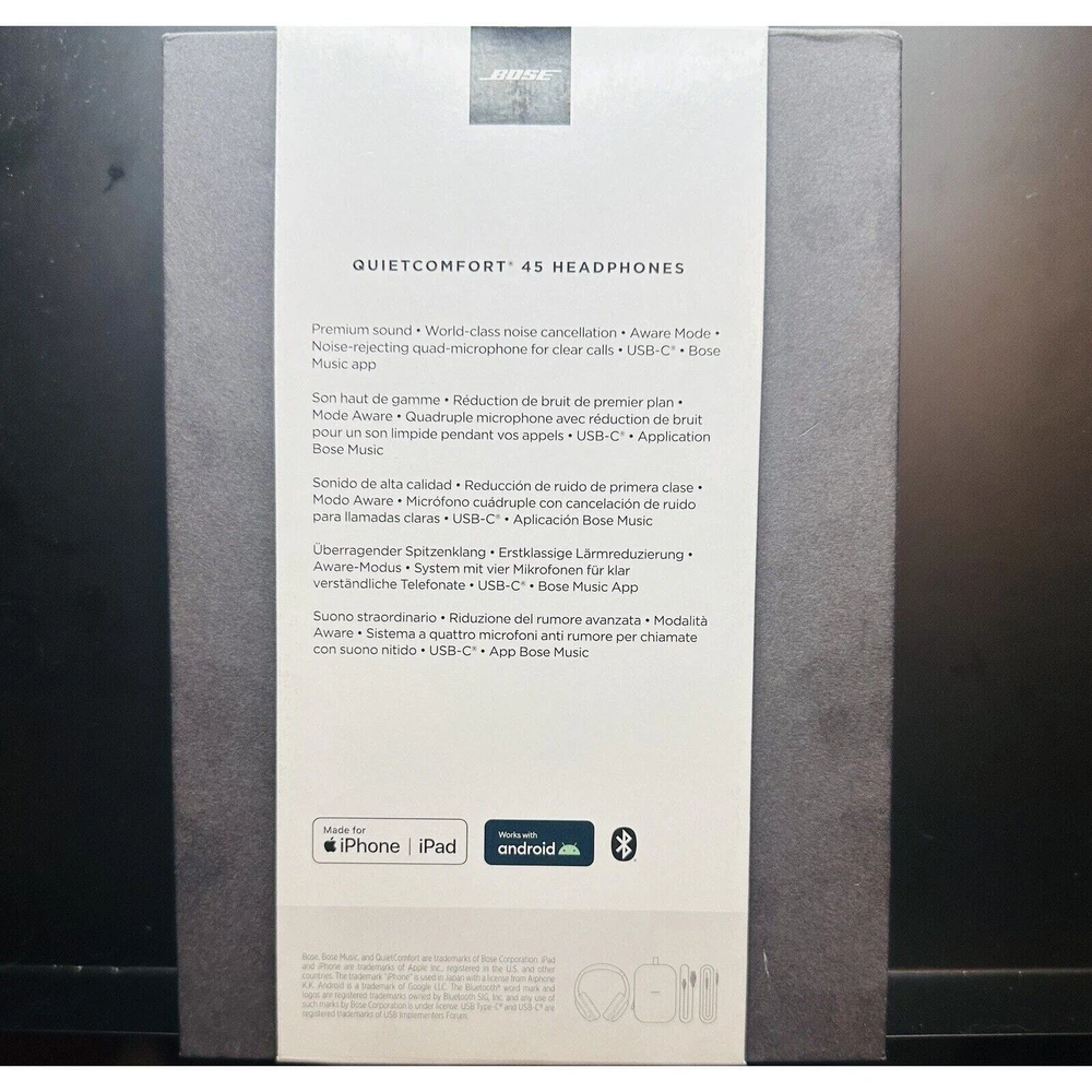 Experience unparalleled sound quality with the Bose QuietComfort 45 Wireless Over-Ear Headset in White Smoke. This headset boasts an ergonomic headband and ear-cup design for maximum comfort during long listening sessions. With Bluetooth connectivity and active noise cancellation, you can enjoy your music without any external distractions. The built-in microphone allows you to take calls and stay connected while you enjoy your favorite tunes. The sleek white design is perfect for any style and the headset is compatible with all your devices. Get ready to immerse yourself in high-quality sound with the Bose QuietComfort 45 Wireless Over-Ear Headset.