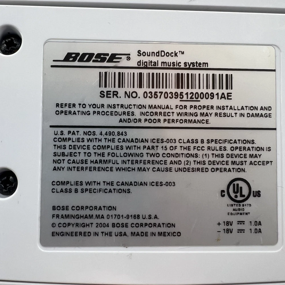 White Bose SoundDock Series 1 Digital Music System Sound Dock- I do not have anything other than the actual sounddock- No power cord, no remote and no manuals. I do not know if the dock works therefore it is being sold for parts only. Please, PLEASE be aware that I do not know if this sounddock works as I do not have the power cord so it is being sold AS IS / for parts only. No refunds or returns.