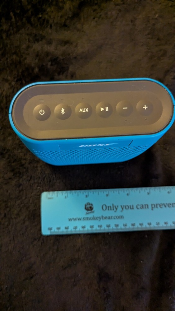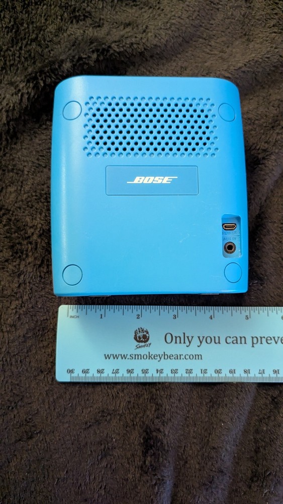 The Bose SoundLink Color Portable Speaker System in Blue is a 2.0 channel wireless Bluetooth speaker designed for universal compatibility. It features a cube shape made of plastic, with dimensions of 5.3 inches in height and a weight of 1.25 lbs. The speaker has a RMS power of 40 W and includes audio inputs for USB and banana jack connections. With its portable and compact design, this Bose speaker is ideal for enjoying high-quality audio on the go.