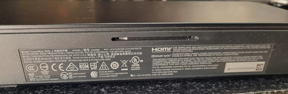 Color: Black Brand: Bose MPN: 838309-1100 Model: Bose Soundbar 500 Audio Inputs: HDMI Compatible Brand: For Bose Type: Soundbar Shape: Cube Connectivity: Bluetooth, Wired, HDMI Features: Bluetooth, Remote Control