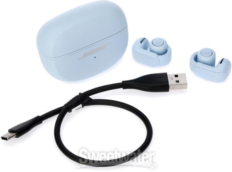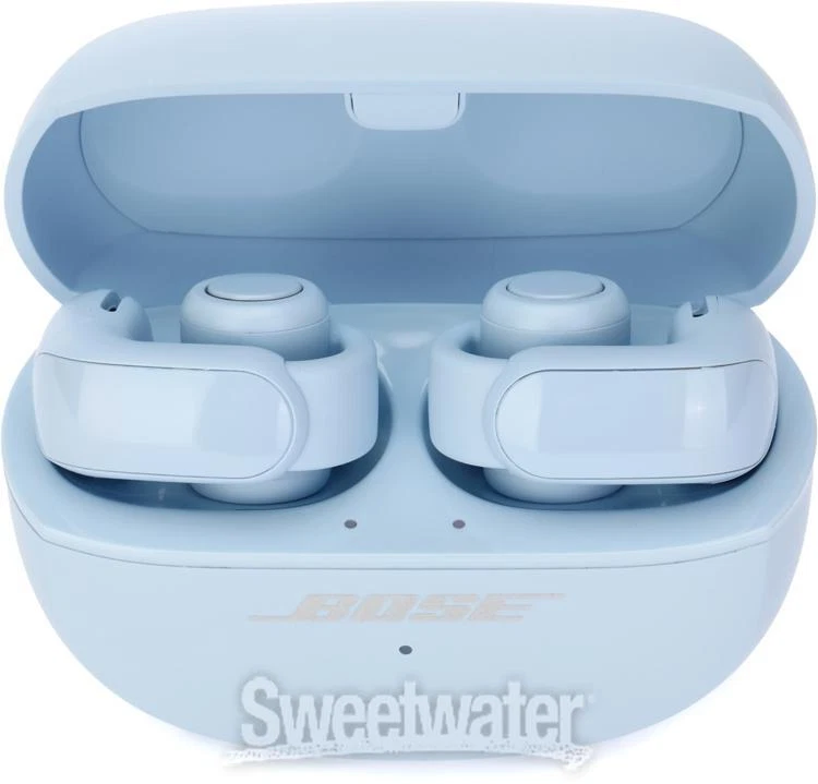 Treat Yourself to a Trailblazing Open Earbud Excellence Jam-packed with revolutionary OpenAudio technology, automated output assistance, and unique exterior placement, Bose's Ultra Open earbuds combine both high-definition audio and the convenience of environmental awareness, redefining the open listening experience. Onboard controls offer supreme control over audio, calls, and custom device shortcuts; meanwhile, the use of the Bose Music app offers advanced EQ, Bluetooth, and battery settings. Speaking of which, Utra Open earbuds supply up to 7.5 hours of playtime — more than enough to tackle the entire workday. Additionally, 19.5 hours of additional power via the included charging case further extends these 'buds portability for ultimate on-the-go convenience. Finally, a sleek outer shell and IPX4 water protection guarantee audiophile-quality sound, rain or shine.Game-changing OpenAudio technology Bose's OpenAudio technology is unlike any other earbud design we've approached at Sweetwater. Unlike traditional models, Ultra Open earbuds rest outside your ear rather than Sweetwater is an Authorized Bose Dealer Genuine New Item Sweetwater's 2-year warranty Bose Ultra Open Earbuds - Moonstone Blue Wireless Bluetooth Earbuds with OpenAudio Technology, Button Controls, SimpleSync, Bose Music Compatibility, and IPX4 Protection - Moonstone Blue Treat Yourself to a Trailblazing Open Earbud Excellence Jam-packed with revolutionary OpenAudio technology, automated output assistance, and unique exterior placement, Bose's Ultra Open earbuds combine both high-definition audio and the convenience of environmental awareness, redefining the open listening experience. Onboard controls offer supreme control over audio, calls, and custom device shortcuts; meanwhile, the use of the Bose Music app offers advanced EQ, Bluetooth, and battery settings. Speaking of which, Utra Open earbuds supply up to 7.5 hours of playtime — more than enough to tackle the entire workday. Additionally, 19.5 hours of additional power via the included charging case further extends these 'buds portability for ultimate on-the-go convenience. Finally, a sleek outer shell and IPX4 water protection guarantee audiophile-quality sound, rain or shine. Game-changing OpenAudio technology Bose's OpenAudio technology is unlike any other earbud design we've approached at Sweetwater. Unlike traditional models, Ultra Open earbuds rest outside your ear rather than being tucked inside. By way of onboard Bose immersive audio and private-level playback, these 'buds supply a dynamic audio output with stark awareness of your surroundings — all while retaining the power and high-definition that contemporary earbuds are known for. Plus, Ultra Opens' built-in SimpleSync technology makes it a cinch to connect to your pre-existing Bose soundbar or speaker system for an entirely personalized listening experience. Remain in authority of your sound Access to music, call, and playback adjustments is available via the Ultra Opens' built-in rear button controls, allowing you to refine your listening experience to a T without accessing your connected device. Likewise, automated volume levels via the earbuds' Auto Volume mode provide a dynamic sound output depending on the noise level of your surroundings, ensuring perfect audio wherever you are. For those who prefer a hands-on approach to tone, the Bose Music app provides access to EQ, Bluetooth, battery, and shortcut settings. Bose Ultra Open Earbuds Features: Wireless open earbuds combining pro-level sound and complete environmental awareness Revolutionary OpenAudio technology pumps out powerful hi-fidelity sound at private levels Onboard Bose Immersive Audio for supreme audio specialization Connect your earbuds to select Bose soundbars and speakers with built-in SimpleSync technology Gripping earbud hook stays in place and keeps your ears available to the outside world Easy-access button controls for authority over music, calls, and more Change EQ settings and control connections through the Bose Music app Automated volume matches your environment for perfect sound in any location Up to 7.5 hrs. of continuous playtime — up to 19.5 hrs. with the included charging case IPX4 water resistance protection Specification Detail Type True Wireless Fit Style Ear Hook Bluetooth v5.3, Codec: (AAC, BLE, SBC), Profiles (A2DP, HFP) Controls 2 x buttons Voice Assistant Bose Voice Control Built-in Mic Yes Software App Bose Music App Compatibility iOS 15.0 or later, Android Features Immersive Audio (Motion, Still) Protection IPX4 Color Moonstone Blue Power Rechargeable Lithium-ion Battery Battery Life Up to 7.5 hours Case/Bag Charging Hard Case Weight 0.44 oz. (earbuds), 1.99 oz. (with case) RETURN INFORMATION We want you to be completely happy with your purchase from Sweetwater. If you are not satisfied with your product, you may return it for a refund of the purchase price within 30 days. If your purchase was eligible for Free Shipping, the shipping cost will be deducted from your credit or refund. Returns must be in the complete and original packaging with all accessories and complete documentation (Owner's Manual, warranty card, quick start guides, etc.), show no signs of wear or use, and include a Return Authorization number or be subject to a restocking fee.