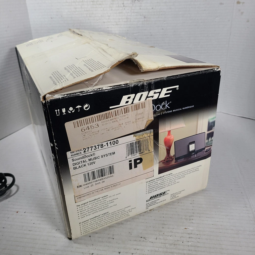 Audio Inputs:3.5 mm Jack, AUX, iPod DockCompatible Model:For iPod ClassicType:Audio DockItem Weight:3.1 lbsShape:CubeConnectivity:WiredCompatible Brand:For AppleMPN:035703951010120AEColor:WhiteYear Manufactured:2010Country/Region of Manufacture:MexicoBrand:BosePlug Regional Fitment:Type AMaterial:PlasticFeatures:Remote ControlModel:Sounddock Digital Music System