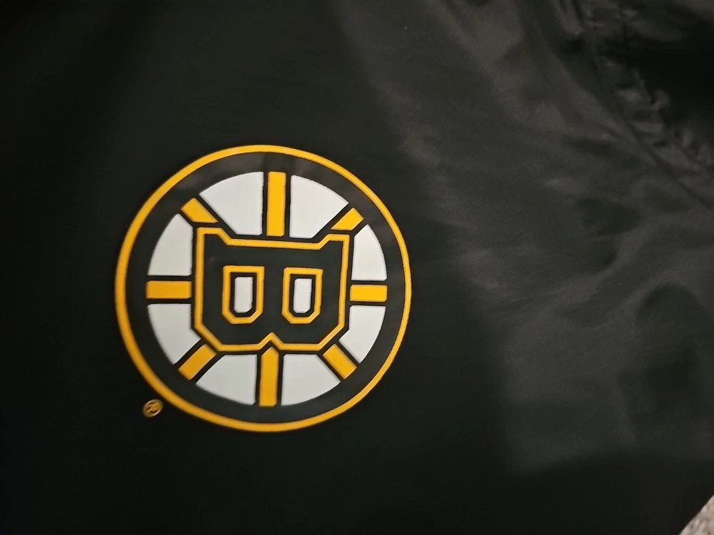 Ordered but is too small for me. Worn once. In great condition! Show off your love for the Boston Bruins with this officially licensed NHL windbreaker jacket. Featuring the team's colors and logo, this jacket is perfect for any fan. It's made for men and comes in size L, making it a great addition to any fan's wardrobe. Whether you're heading to the rink or just out and about, this jacket is perfect for showing your support for the Boston Bruins. It's made with high-quality materials and is sure to keep you warm on those chilly game days. Get yours today and show everyone your team spirit!