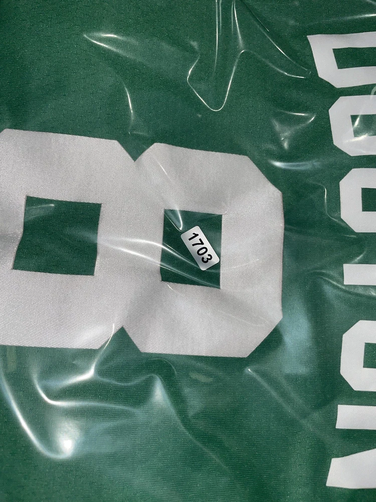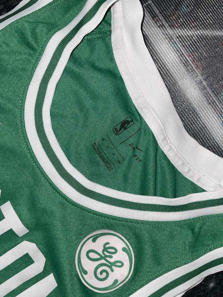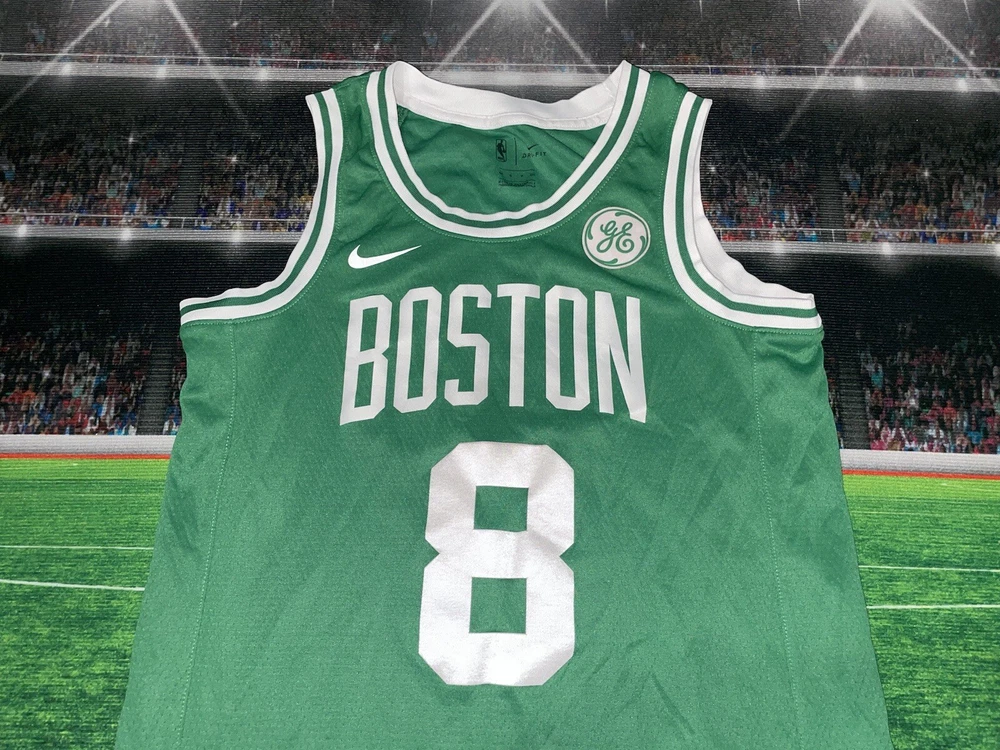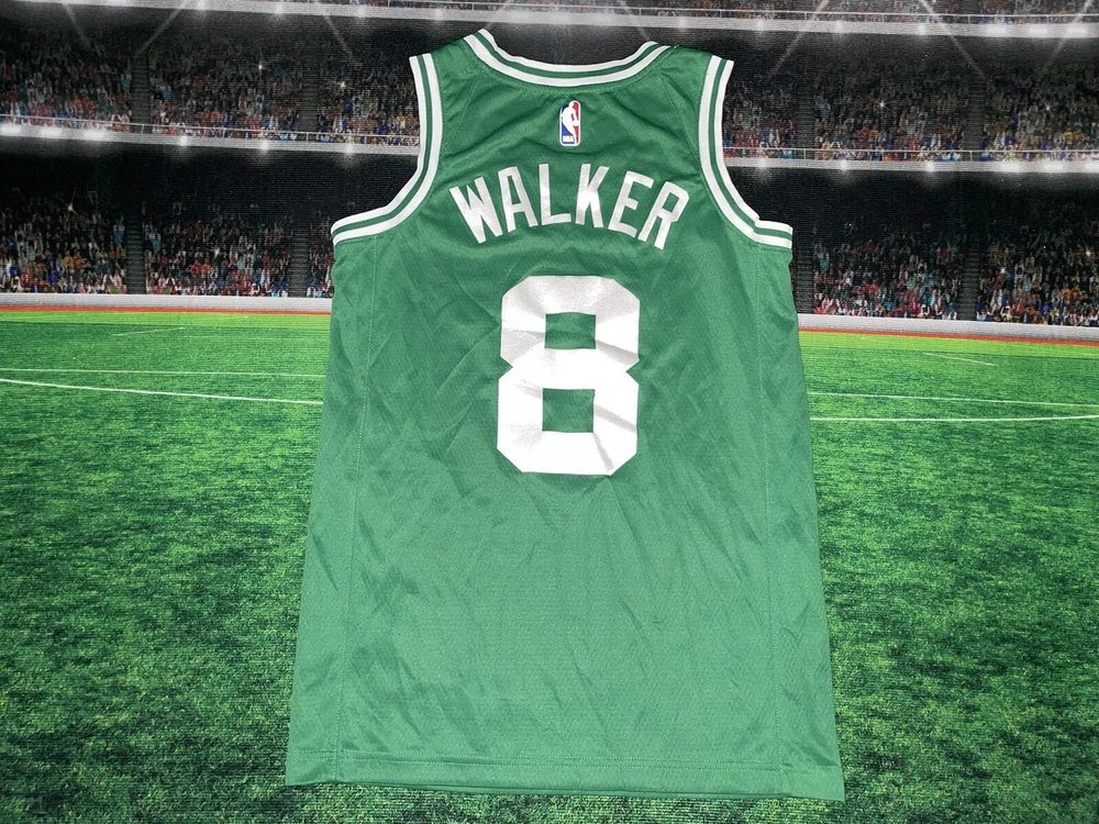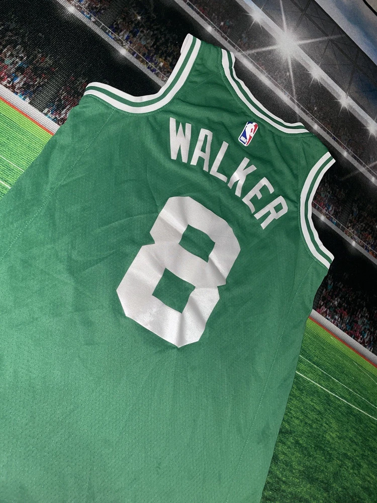 Show your support for the Boston Celtics and Kemba Walker with this officially licensed Nike jersey. The green color and size S make it a perfect addition to any fan's collection. This jersey is perfect for basketball enthusiasts who want to represent their favorite team and player. Made with high-quality materials, this preowned jersey is a must-have for any sports fan. It features the Boston Celtics team logo and Kemba Walker's name and number on the back. This jersey is perfect for game day or any day, and is sure to make you stand out as a fan. Note: has a spot