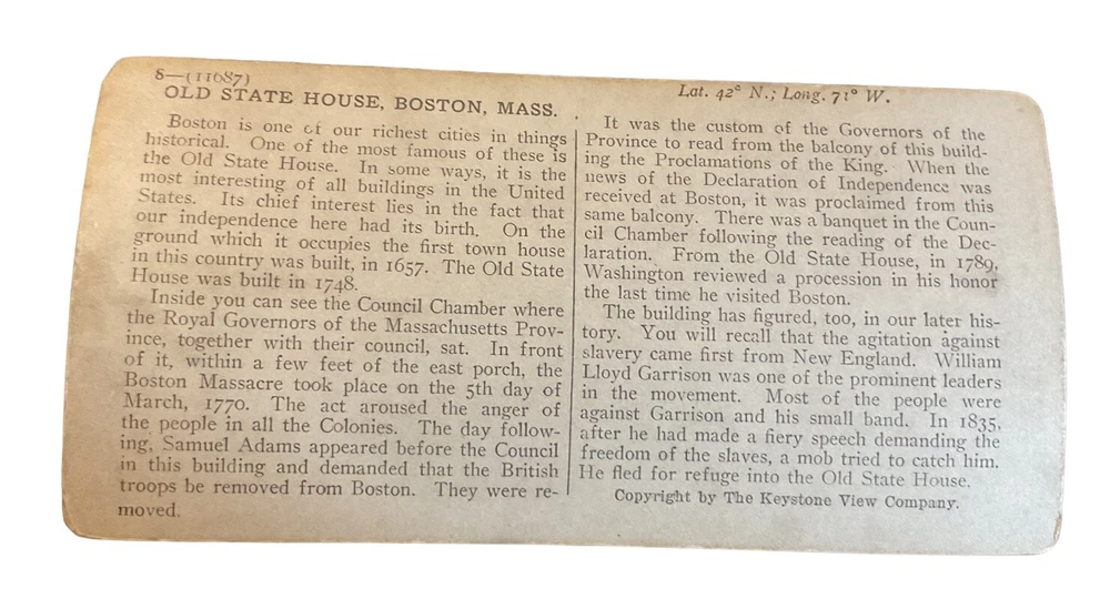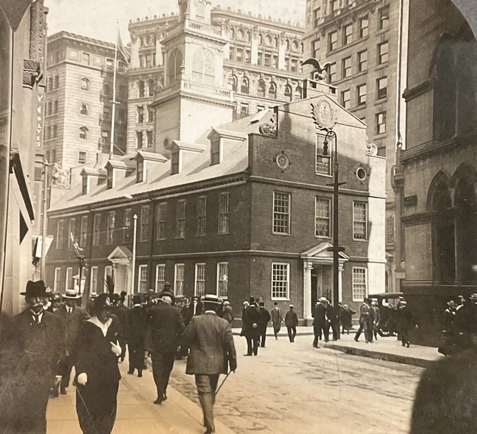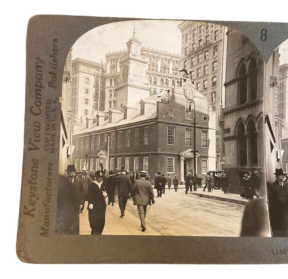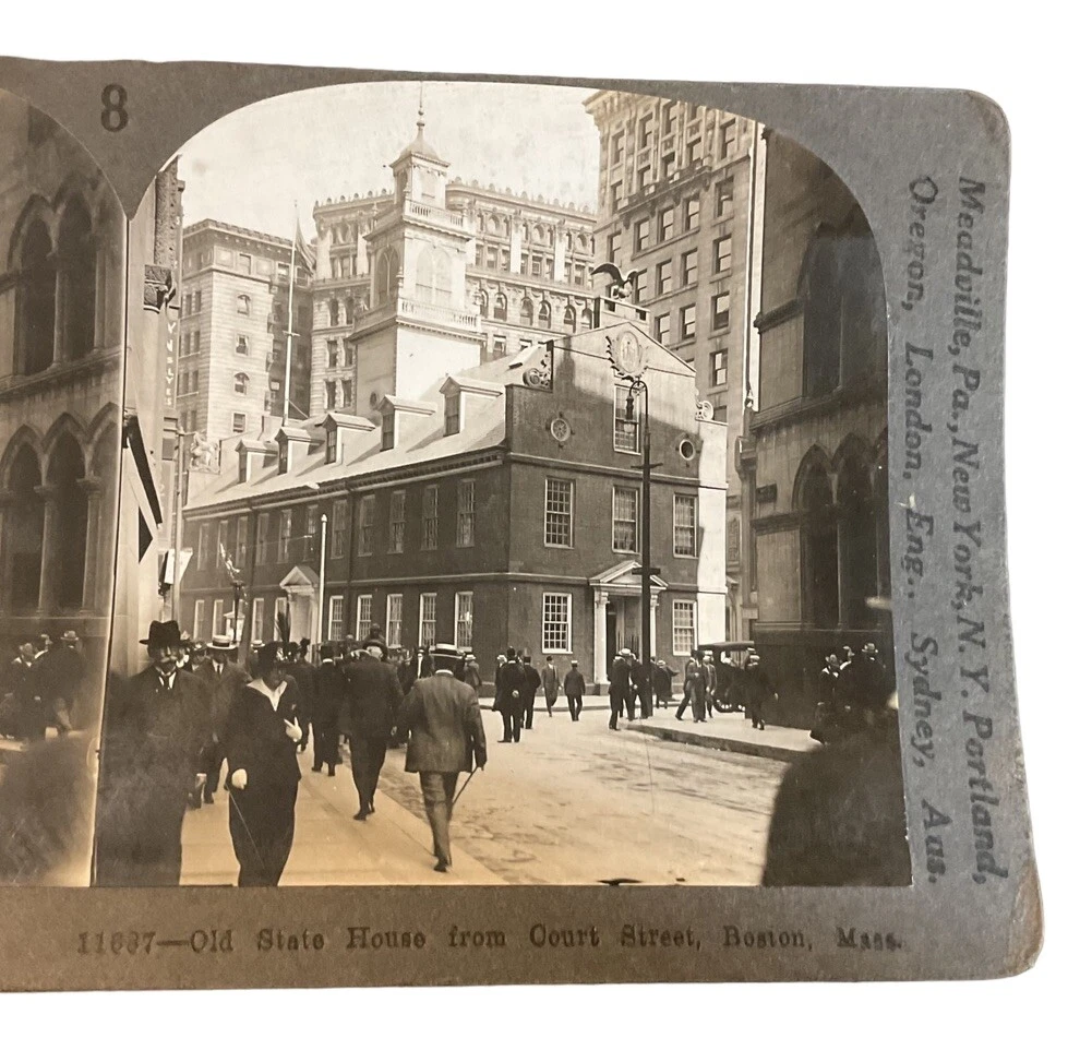 Brand/Publisher: Keystone View Co. Vintage: Yes Production Technique: NA Signed: No Image Color: Black & White Antique: Yes Time Period Manufactured: 1900-1924 Title: Old state house from Court Street Boston Mass Features: NA Material: Cardboard Subject: Boston, State House Theme: Massachusetts, Boston Number of Items: 1 Unit of Sale: Single Piece Original/Licensed Reproduction: Original Country/Region of Manufacture: Unknown Year of Production: 1920 Type: Stereoview & Stereoscope