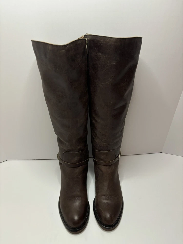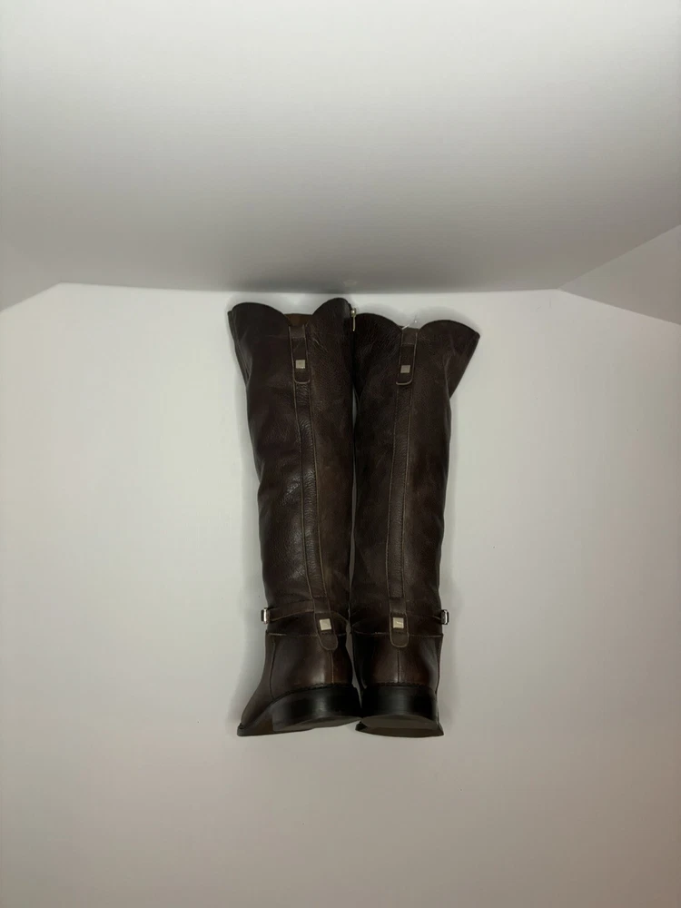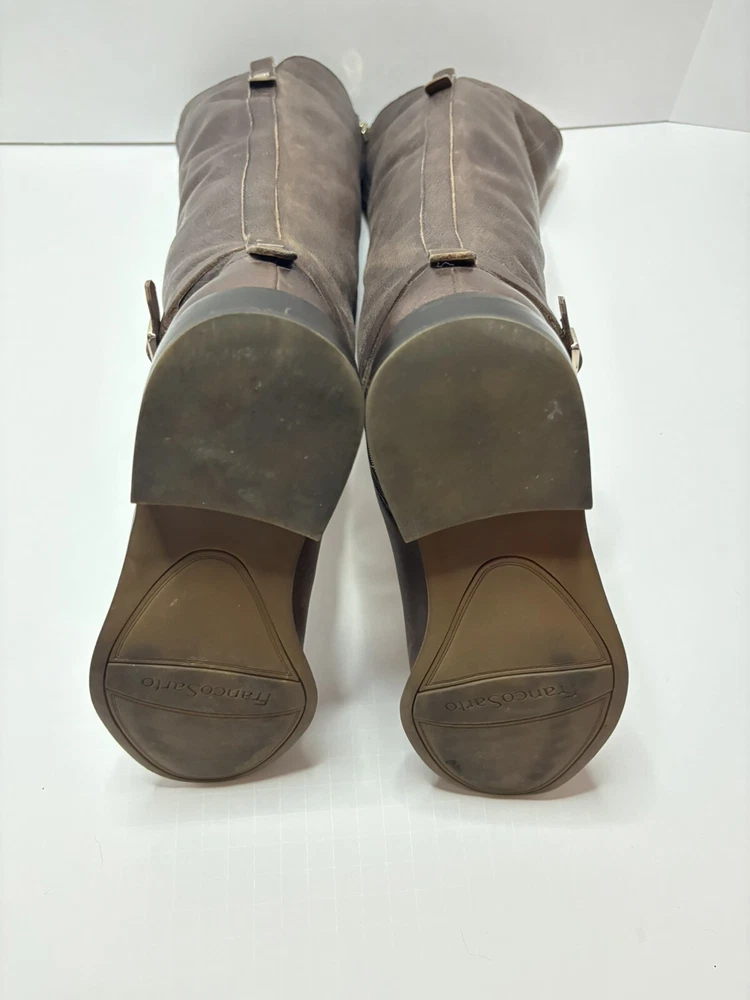 Franco Sarto Women's Riding Brown Boots Silver Buckle Sz 7M. Condition is Pre-owned. Shipped with USPS Ground Advantage.