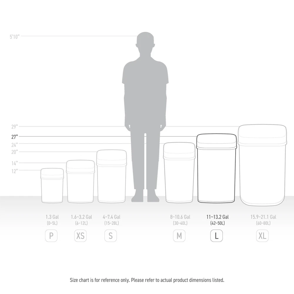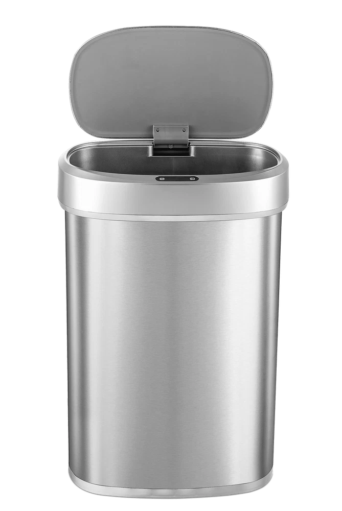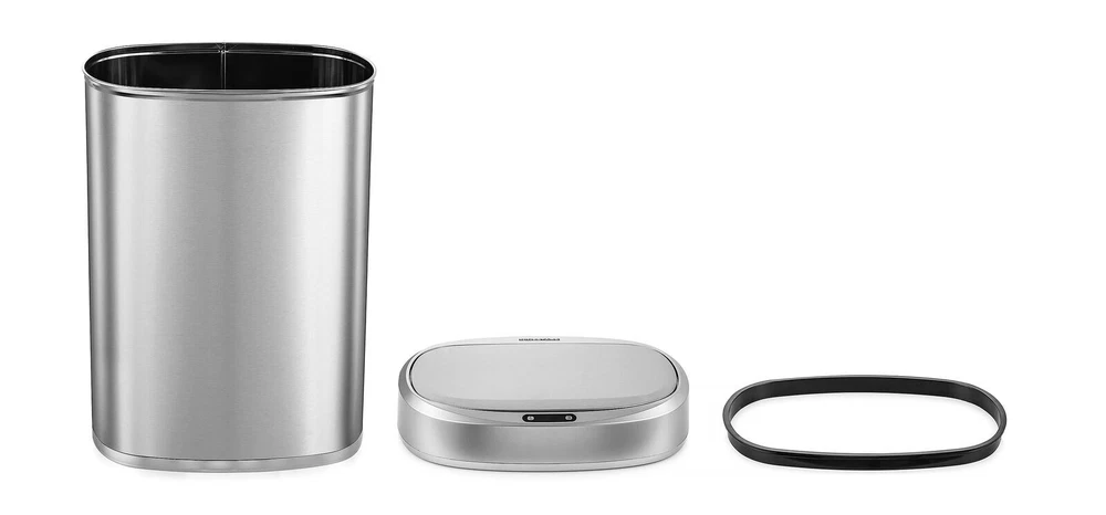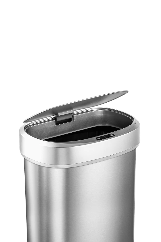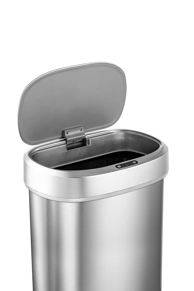 Equipped with leading motion sensor technology, the dzt-50-49 motion sensor stainless steel trash can represents the ideal blend of form and function. Improve your living space, protect yourself from germs, and keep your hands free for the things that really matter. This unit has a total capacity of 13.2 gallons (50 liters), so it is large enough to accommodate your entire family and makes it perfect for kitchen, office, or public areas. Features: The hands-free lid opens with a simple wave of the hand. A removable ring liner keeps the trash bag securely in place and hidden from sight. Quiet motion soft-close lid with count-down timer, adjustable sensor, and a battery life indicator. Advanced infrared technology preserves motion sensor battery life. Non-skid base keeps your floor protected. Requires 3 "D" batteries (not included). Stainless steel body and lid. On Nov 25, 2024 at 19:57:21 PST, seller added the following information: