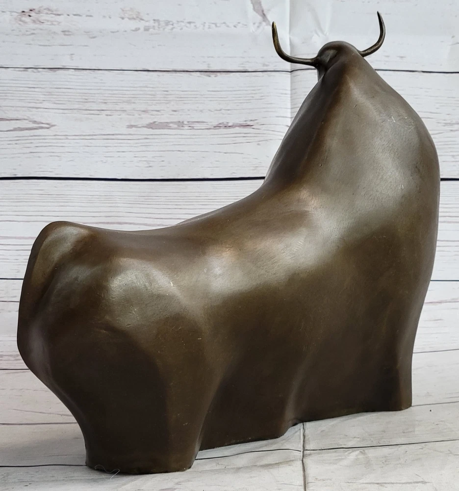 Botero Tribute Spanish BULL Wall Street Stock Market Bronze Statue Matador Sale Botero Tribute Spanish BULL Wall Street Stock Market Bronze Statue Matador Sale Condition : This sculpture is in a perfect condition. Bronze Dimensions: Height 7" X Width 10" Weight:5 LBS Inventory:27AL3995972 Experience a captivating reinterpretation of Botero's iconic style through this striking bronze sculpture. Capturing the essence of abstract art, the piece presents a large bull with exaggerated proportions that uniquely blend abstraction and appreciation for the animal form. This masterpiece is a perfect gift choice for both bull enthusiasts and animal lovers who admire bold artistic expressions. Fernando Botero, the renowned Colombian figurative artist, has left an indelible mark on the art world with his distinctive style. Recognized as a prominent Colombian artist, Botero's fame skyrocketed after winning the first prize at the Sal de Artistas Colombianos in 1958. Based primarily in Paris, his work has gained international acclaim, gracing museums, private collections, and corporate spaces worldwide. This bronze sculpture exemplifies Botero's signature approach, fusing abstract elements with his unique representation of reality. Through skillful manipulation of shape and volume, the artist brings a remarkable tactile quality and allure to the sculpture. Crafted using the revered lost-wax casting method, this three-dimensional artwork captures Botero's essence while paying homage to his exceptional talent. The sculpture stands as a testament to Botero's artistic legacy and is a must-have for devoted enthusiasts of his work. It invites you to engage with art in a new and thought-provoking way, making a bold statement wherever it is displayed. This captivating bronze sculpture celebrates the fusion of abstract art and animal appreciation, reflecting Botero's unparalleled creative vision. Modern Art Abstract Bull Bronze Figurine BOTERO Statue Sculpture Figurine Figure www.bronzhaus.com Video will open in a new window Using the eBay App? Paste link into a browser window: [isdntekvideo] Shipping Terms : Most of our items are shipped via USPS (United States Postal Service) mail or UPS. Most orders are shipped within 24-48 hours of purchase. Please be aware that not all items are available for USPS shipping due to size and weight. We do ship to Hawaii, Alaska, Canada, Puerto Rico, APO/AE, and U.S. Virgin Islands, however, an additional charge may be required. Please contact us before making any purchases in these areas. For Non-USA customers, you may be responsible for all duty, tax, brokerage fees that may be due upon delivery (shipping costs cover freight charges only). We also ship internationally. Please refer to the "Shipping and Handling" chart for the rates for each area. Payment : We accept just about any form of payment. PayPal, Master Card, Visa or American Express credit cards. Money orders, cashiers checks, and even personal or business checks. For governmental institutions, we will also accept a purchase order. Please understand that for personal or business checks we have to wait for the check to clear (usually 7 days) before shipping. Condition : New Detailed Hand Crafted Hot Cast Bronze Satisfaction Guaranteed. This is Stock Photo, Slight Color Variation!! Listing and template services provided by inkFrog