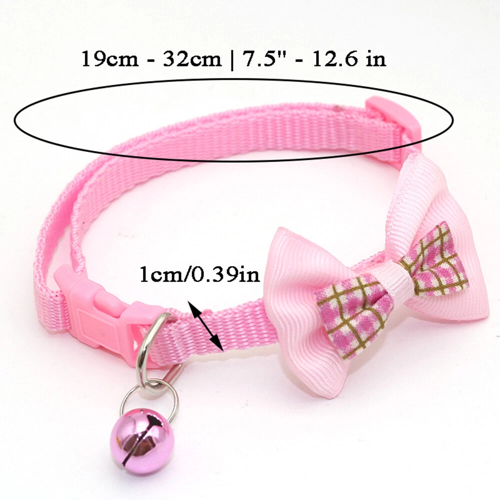 Features: 100% Brand New and high quality. 1.Lovely cat collar: lovely design, lovely fashion, suitable for daily use. 2.Bow and bell collar: Bell with melody sound, you can easily find a lovely kitten 3.Material / size: made of high quality polyester material, durable and soft. Adjustable range of 7.8 - 10.5 inches (about 19.8 - 26.7 cm), width of 0.3 inches (about 1.0 cm), suitable for most cats 4.Untie: the safety buckle will release when pressure is applied. The cat is very safe and easy to open. Size: Adjustable range: approx 19-32/7.48"-12.6",Width 1cm/0.39" Material: Polyester,Nylon Color:As picture shown Applicable object: cat,dog Package Included:1 X Pet bell collar Please note : This collar has a standard snap buckle fastening, not a quick release clasp Adjustable Size: kitten Cat collars are adjustable from 7.5 - 12.5 inch, 2/5 inch 19-32cm in width. Please measure your cat' s neck girth before purchasing, to ensure the most comfortable fit for the collar size. Bell Accessories: The bell on the cat collar can let you know the position of the cat at any time. Notes: Due to manual measurement, there may be an error of 0.2-0.5 inch (about 0.5-1.3 cm). Please measure the size carefully before placing the order.