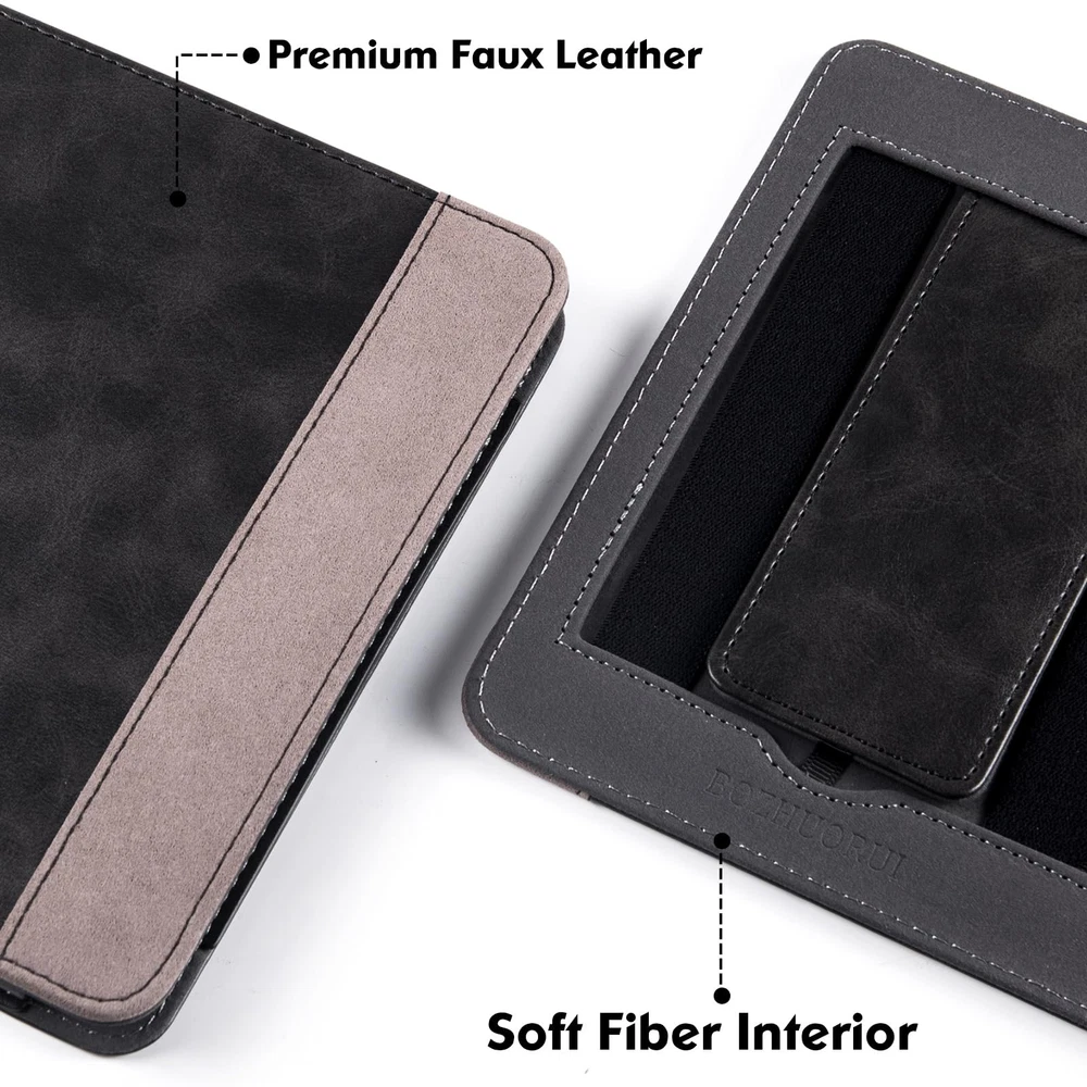 BOZHUORUI Stand Case Compatible with Amazon 7" All-new Kindle Paperwhite 12th Generation/Signature Edition (2024 Released) & Kindle Colorsoft Signature Edition (1st Generation,2024 Released) Color Display eReader. will not fit prior generation Kindle devices. This 7-inch kindle case is designed specifically for the all-new kindle paperwhite 2024 & kindle colorsoft signature edition e-Reader. the kindle paperwhite 2024 or kindle colorsoft cover is made of sturdy and durable faux leather material, which can effectively resist various collisions and scratches in daily use, providing all-round protection for your kindle paperwhite 12th generation or kindle colorsoft ereader.It with a folding stand and elastic hand strap,Support hands-free reading or one handed grip reading,Allow you to reading comfortably. folio book design,opened like a book, also provides comprehensive protection, so you don't have to worry about any accidental damage when reading. In addition, its design is very minimalist, Easy to install,making your kindle device look more stylish. our kindle paperwhite 12th generation & kindle colorsoft signature edition case adds a full layer of protection to your kindle eReader. Whether you're using your 7" kindle paperwhite or kindle colorsoft eReader at home, at the office or on the go, this kindle protective case provides reliable protection for your device. What's in the box:Stand Case for Kindle Paperwhite 12th Generation (2024 Released) or Kindle Colorsoft Signature Edition * 1 1. Only Compatible with Amazon All-new 7" Kindle Paperwhite 12th Generation 2024/7" Paperwhite Signature Edition 2024 & 7" Kindle Colorsoft Signature Edition 2024 eReader (Model.SA568B/SA569P). 2. the 7" kindle colorsoft/12th generation Kindle Paperwhite cover supports automatically wake up or put your device to sleep when you open or close the lid. 3. the 7-inch kindle paperwhite 2024 case with hand straps,Elastic Hand strap allows to read with one hand easier and more comfortable. 4. the kindle paperwhite 12th generation/kindle colorsoft signature edition case with stand,Foldable stand design could set your hands free during your reading. 5. Use of high quality faux leather materials and soft non-scratch microfiber interior. Protect the 12th gen kindle paperwhite/7-inch Signature Edition 2024 or kindle colorsoft e-reader from fingerprints, dirt and scratches. 6. A Premium all-new 7 inch kindle paperwhite accessory,Simple folio design, use like a notebook,convienent to carry, Our kindle paperwhite 7 inch case and covers are available in a variety of colors to meet your individual needs,Makes a great gift for a friend or family member.