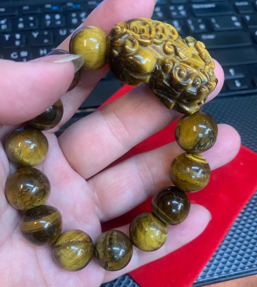 Feng Shui Tiger Eye Stone Pi Yao Pi Xiu Bracelet For Wealth Luck + Energy Healing Stretch Bracelet Natural Stone Hematite Tiger Eye for Men Women 100% Brand new Quantity : 1 pc. Material: Tiger-eye Stone + Pi Yao Pi Xiu Color: As pictures shown Energy Healing Stretch Bracelet Natural Stone Hematite Tiger Eye for Men Women The gemstone beaded bracelet is excellent it has a 8mm round all-natural stone, known as a tiger's eye bead, hematite and black obsidian. It is hand-made with elastic cord that stretches nicely for toughness. It is quite comfortable to wear it will stretch, this allows it to fit most people. With natural healing stones this can assist with releasing stress and anxiety, it strengthens integrity, determination, self-esteem, luck, and helps with clear thinking which can bring success. This Bracelet is ideal for men and women for any occasion. Even if the occasion is just treating yourself.