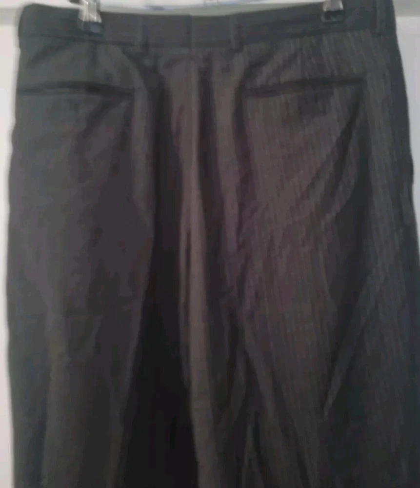 Crafted for the modern gentleman, these Bracks men's dress pants in a classic black pinstripe are a versatile addition to any wardrobe. Sized at 62R with a high-rise fit, they offer both comfort and a sharp, tailored look for various occasions, from business meetings to weddings. The cotton material ensures breathability and ease of care, while the multiple pockets, including two back pockets and a slash pocket, provide practical storage. The pants feature a flat front design, zip, button, and hook & loop closure for a smooth finish, and are machine washable for convenience. With features such as belt loops and lightweight fabric, these pants are both functional and stylish, suitable for wear across seasons from winter to spring.