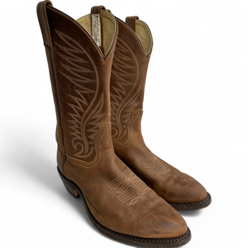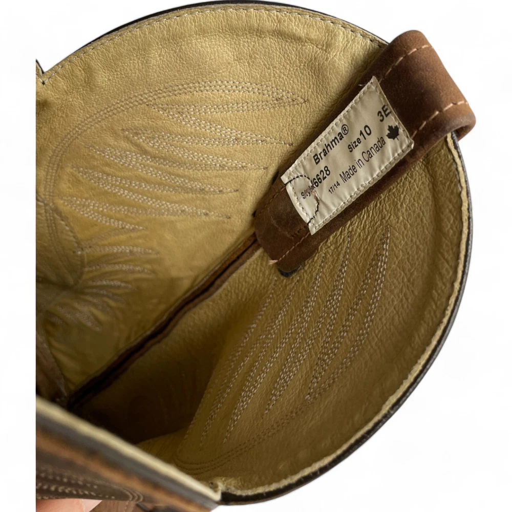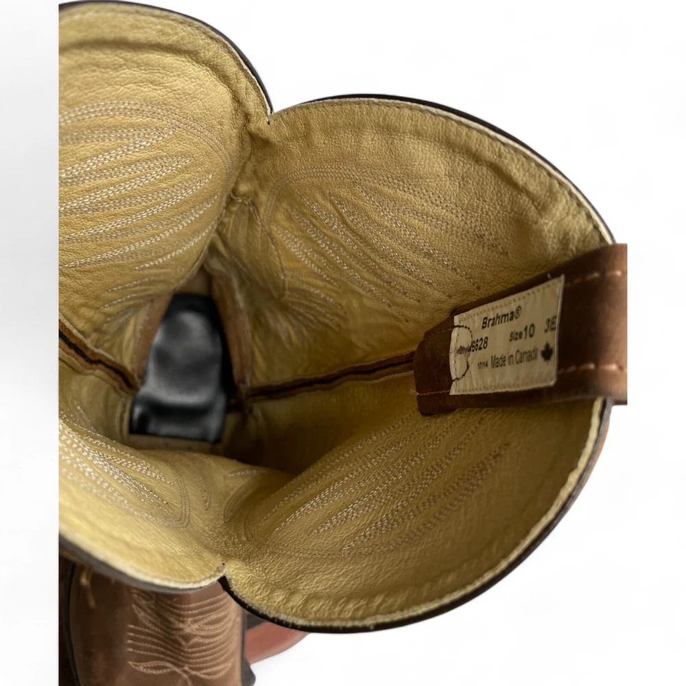 Brahma Premium Grade Leather Western Boots Brown Cowboy Embroidered Men's 10 EEE