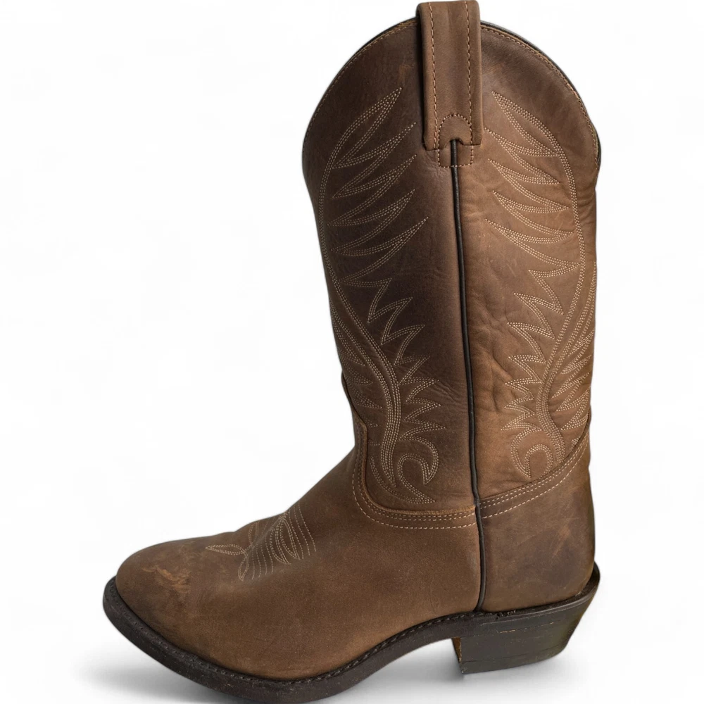 Brand: Brahma Department: Men Color: Brown Upper Material: Leather Closure: Pull On Accents: Embroidered Shoe Width: EEE US Shoe Size: 10 Pattern: Western Type: Boot Theme: Biker, Cowboy, Western Style: Western Model: Brahma 6628 Toe Shape: Almond Toe Features: Comfort