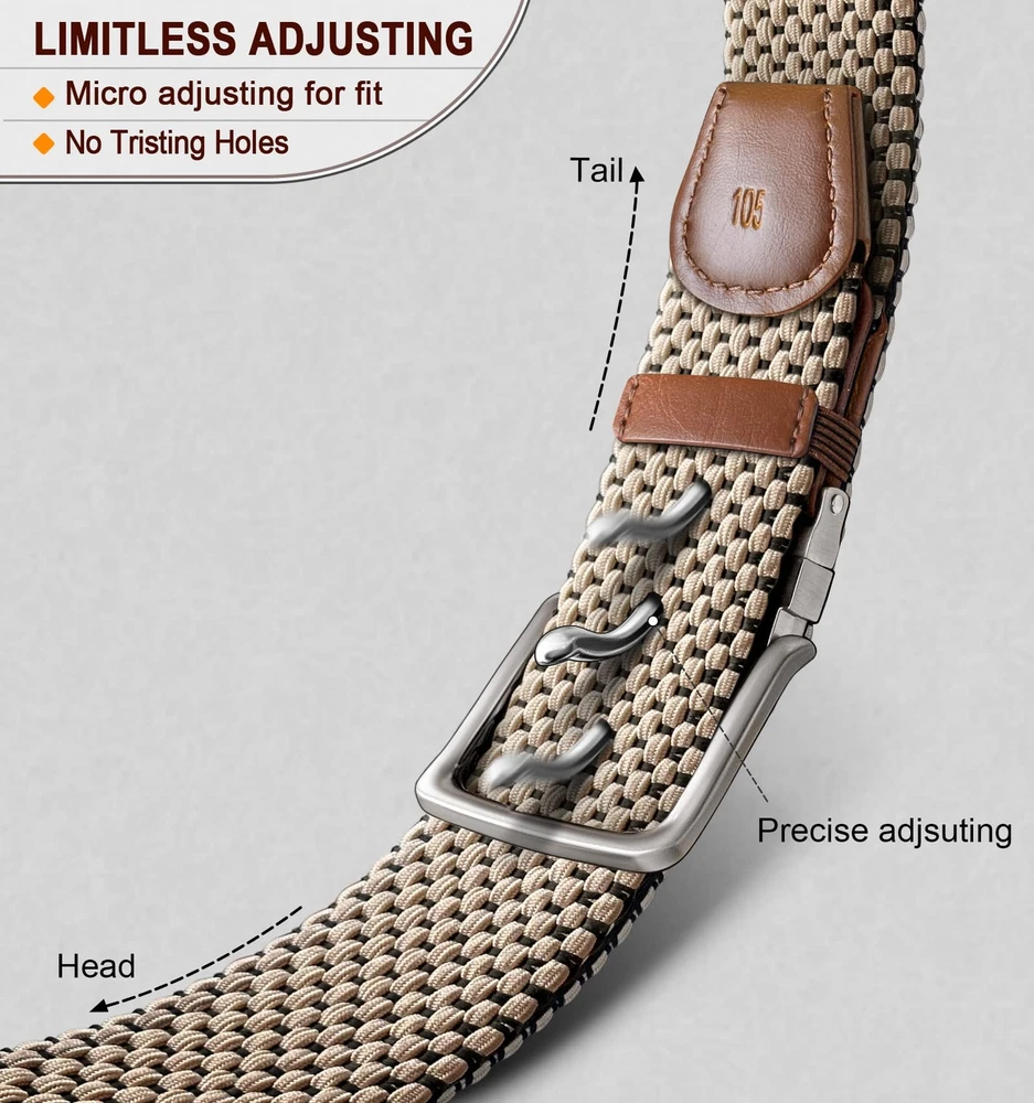REVERSIBLE--Paying belt but getting ! So easy to reverse the belt from side to another,thus you can change from black to brown and vice versa to match different dresses,specially for travelling; KEEPING FIT--The buckle prong can easily locks into the weaving,no holes as traditional ones,no ratchet steps,free to get real exact fit and very easy to handle by boys; COMFORTABLE--The belt strap is made of light nylon fabric,super lightweight on pant,keeping holding but very comfortable for children; STRETCHABLE--The strech nylon fabric gives a proper flexibility to the strap,not too less not too much,just righ to adapt the waist varies in different occasions,standing,sitting,running or buffet,no need to worry about your boy's pant keeping slding down in the gym class; LASTING LONGER--Locking anyway on strap enable a limitless adjusting for this belt,it covers a bigger waist range to for fit with the boys growing.