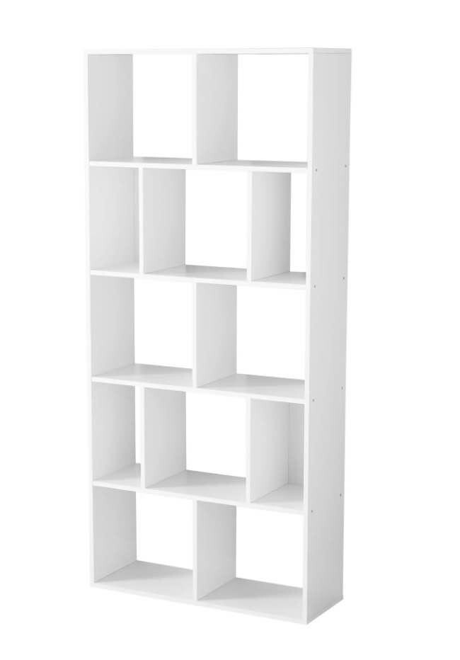 Brand New & Shipped for free via FedEx/ UPS. Dimensions: 32.01"L x 11.46"W x 70.98"H This sturdy storage unit features an open-back construction and twelve divided cubes of varying sizes to create an eclectic look. It stands an impressive 71-inches tall. 12 divided cube selves provide functional storage to large and medium rooms
