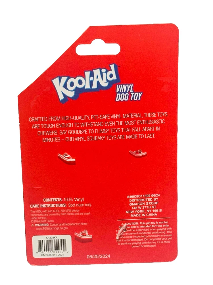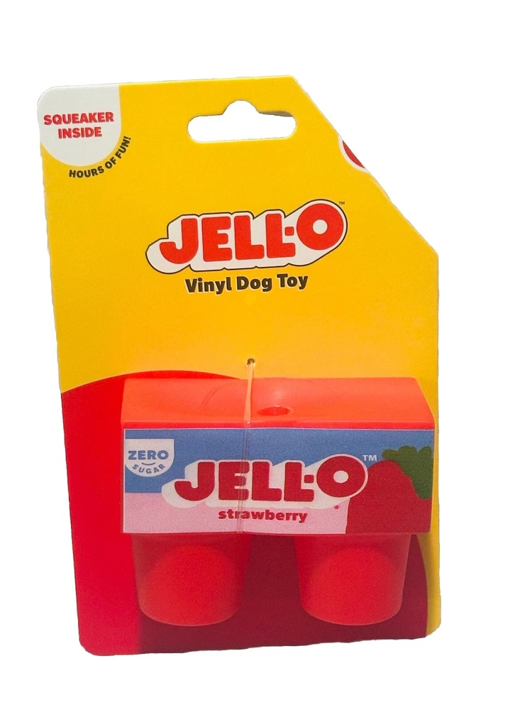 Introducing the Jell-O Squeak Vinyl Dog Toy, perfect for your furry friend's entertainment. Made from high quality vinyl, this chew toy is durable and designed to last. Its unique design includes a squeaky feature that is sure to make your dog go wild. This toy is suitable for all dog sizes and is great for both indoor and outdoor play. The Jell-O Squeak Vinyl Dog Toy is a must-have for any pet owner looking for a fun and engaging toy for their furry friend. Tag is cut. See photos attached.