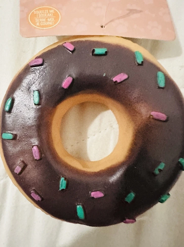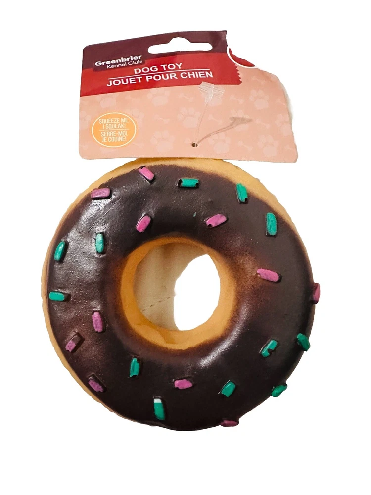 This Squeak Vinyl Dog Toy is the perfect addition to any dog's toy collection. Crafted from high quality vinyl and featuring a donut design, this toy is sure to delight any dog size. The squeaky feature adds an extra touch of fun to this already amazing chew toy. With its durable material and cute design, this toy is guaranteed to keep your dog entertained for hours. Whether you have a large or small dog, this toy is perfect for them. Get your hands on this amazing chew toy today and watch your dog's tail wag with joy. Tag is cu.