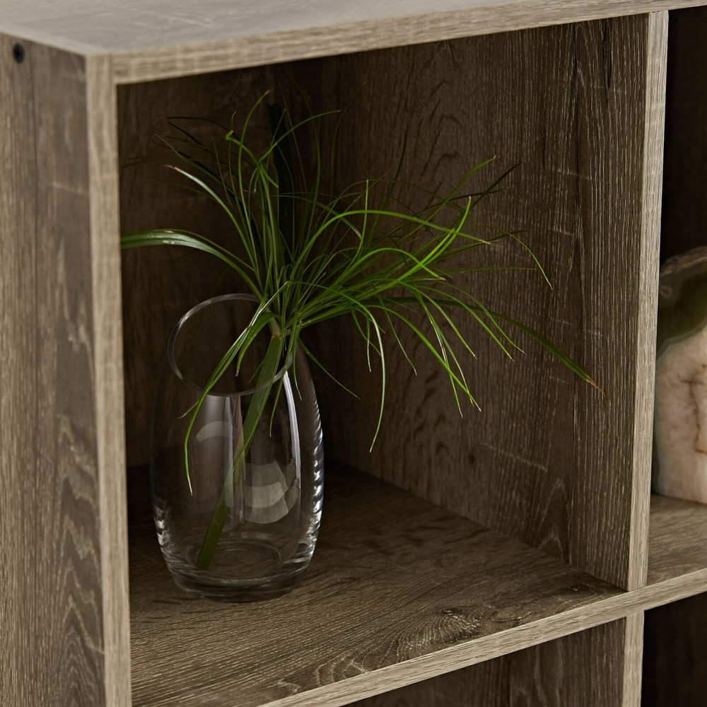 (Items not included - Just the cube storage .) Mainstays 8-Cube Storage Organizers feature compartments that are perfectly sized for displaying books, collectibles, photography, artwork, and more. They are also compatible with Mainstays collection of 10.5" x 10.5" collapsible storage bins (sold separately). The stylish design includes four open-back cube compartments that make managing cords easy, and four closed-back compartments to keep items securely housed. The top panel and middle shelves can each support up to 22 pounds, and bottom panel can support up to 33 pounds. This easy to assemble unit is available in multiple finishes to fit in with almost any decor. Add an accent piece that is as functional as it is fashionable to your living room, family room, den, home office, and more, with the Mainstays 8-Cube Storage Organizer.